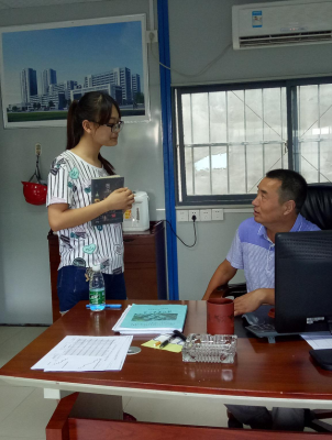 当日上午,全体成员来到南通四建集团公司于国产视频 建设项目的现场并受到了国产视频 项目总负责人于建光于经理的热情接待。在全体佩戴安全帽后团队成员和于经理就此项目进行了热烈讨论并了解到国产视频 项目由于是在先前没有建筑物的基础上进行建造,因此相较于那些将建筑物推掉再建的类型而言,其产生的建筑污染是明显少很多的。小组成员还就建筑废料和噪声问题进行了提问,于 于经理帮组员整理安全帽