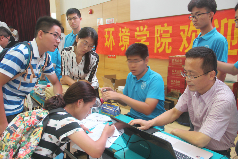 王沛芳院长等一行人首先来到文体中心对16级迎新工作志愿者同学表示慰问,向现场学生和家长表示欢迎,介绍了国产视频 的具体情况,并向家长了解学生的成长经历。王芳沛院长和笪学军书记亲自为新生发放入学相关资料。