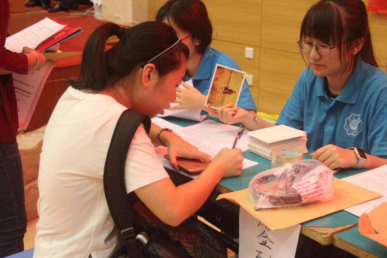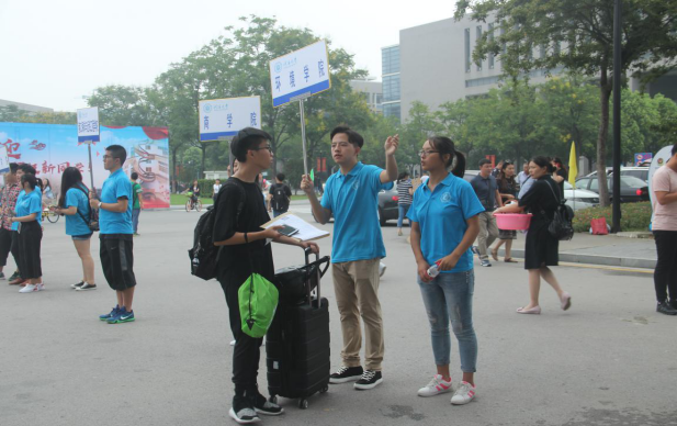 在东门和南门的同学主要负责导引的工作,他们举着“国产视频 ”的牌子,为学生和家长提供帮助;在文体中心的同学提前准备好了新生入学所需的各项材料;在骏园接待点工作的同学则为新生更方便的入住宿舍而努力着。
