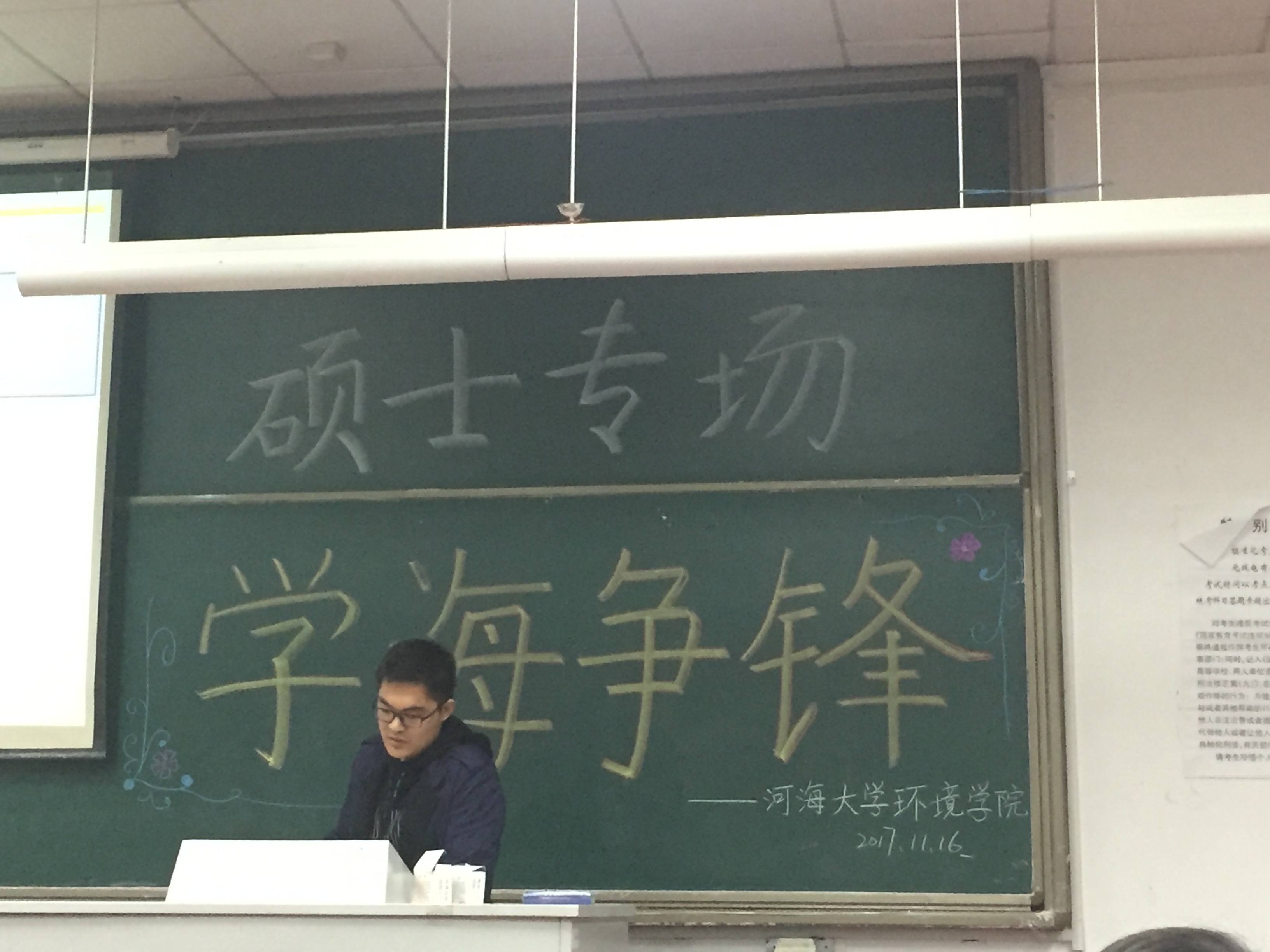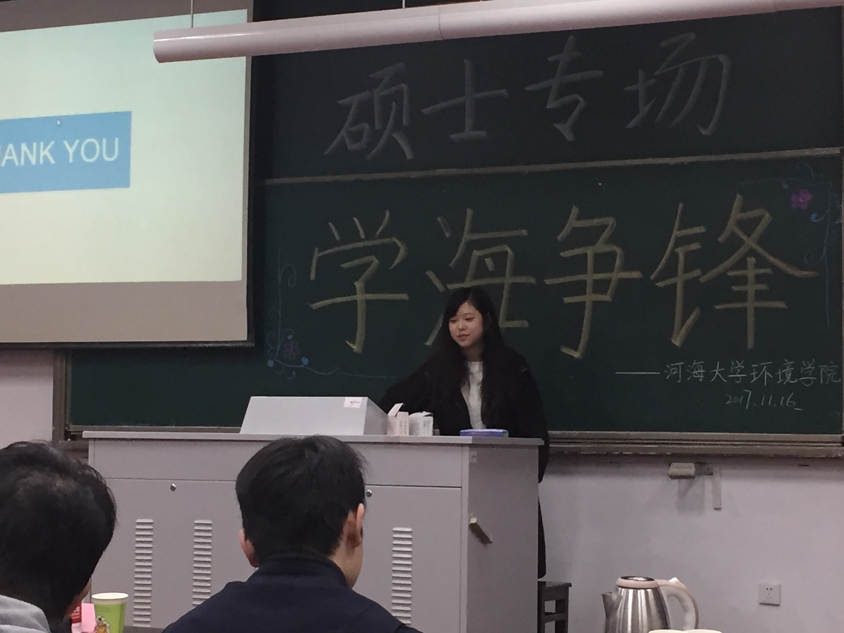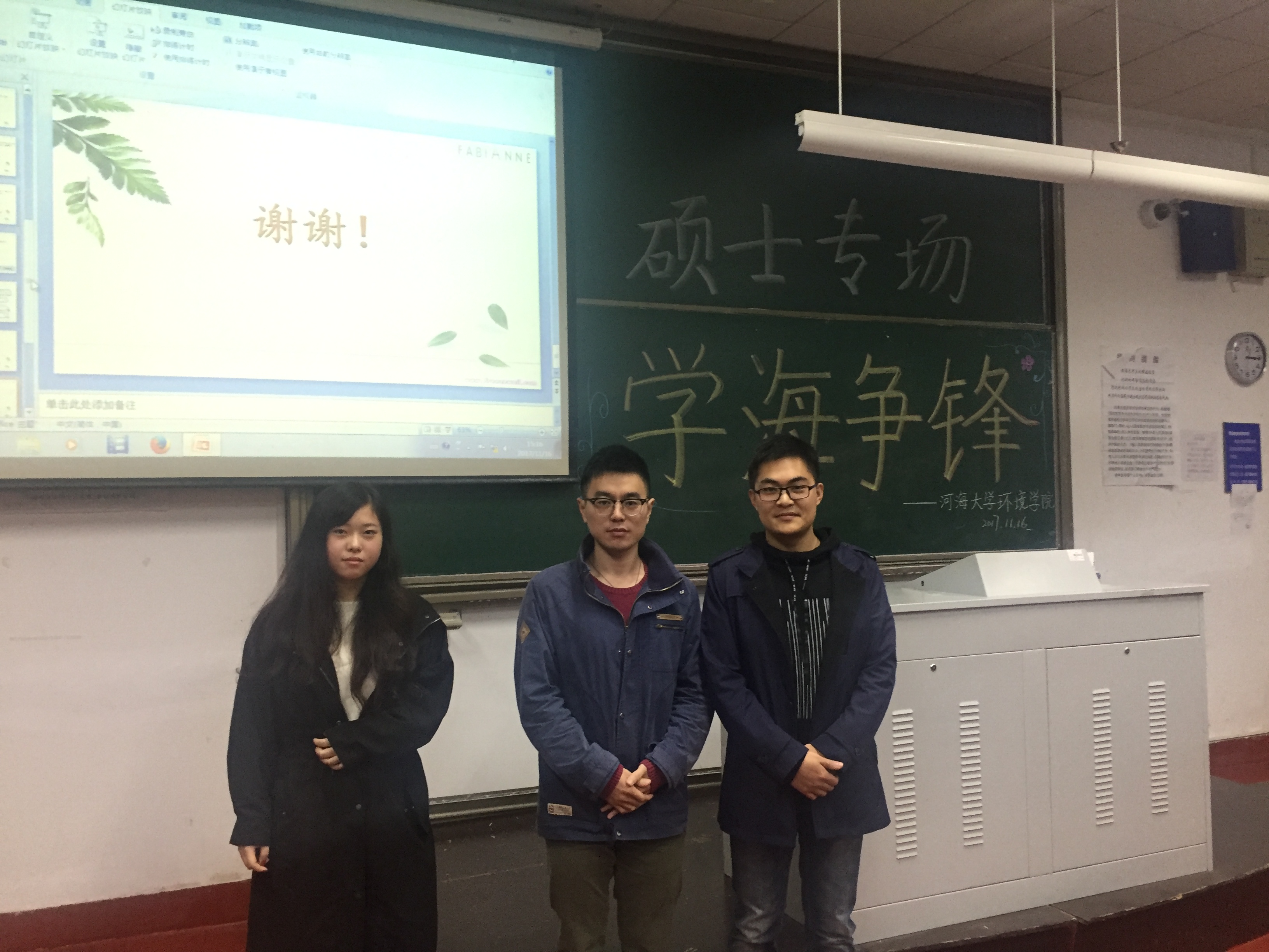 2017年11月16日下午,由国产视频 研会研科协策划并举办的“学海争锋——硕士专场”学术讲座于水利馆B101教室举行。本次讲座的三位主讲均是国产视频 优秀的研究生,都是今年国家奖学金的获得者,分别是16级市政工程专业的曹臻、15级市政工程的张佳男、15级环境科学与工程的沙海涛。
