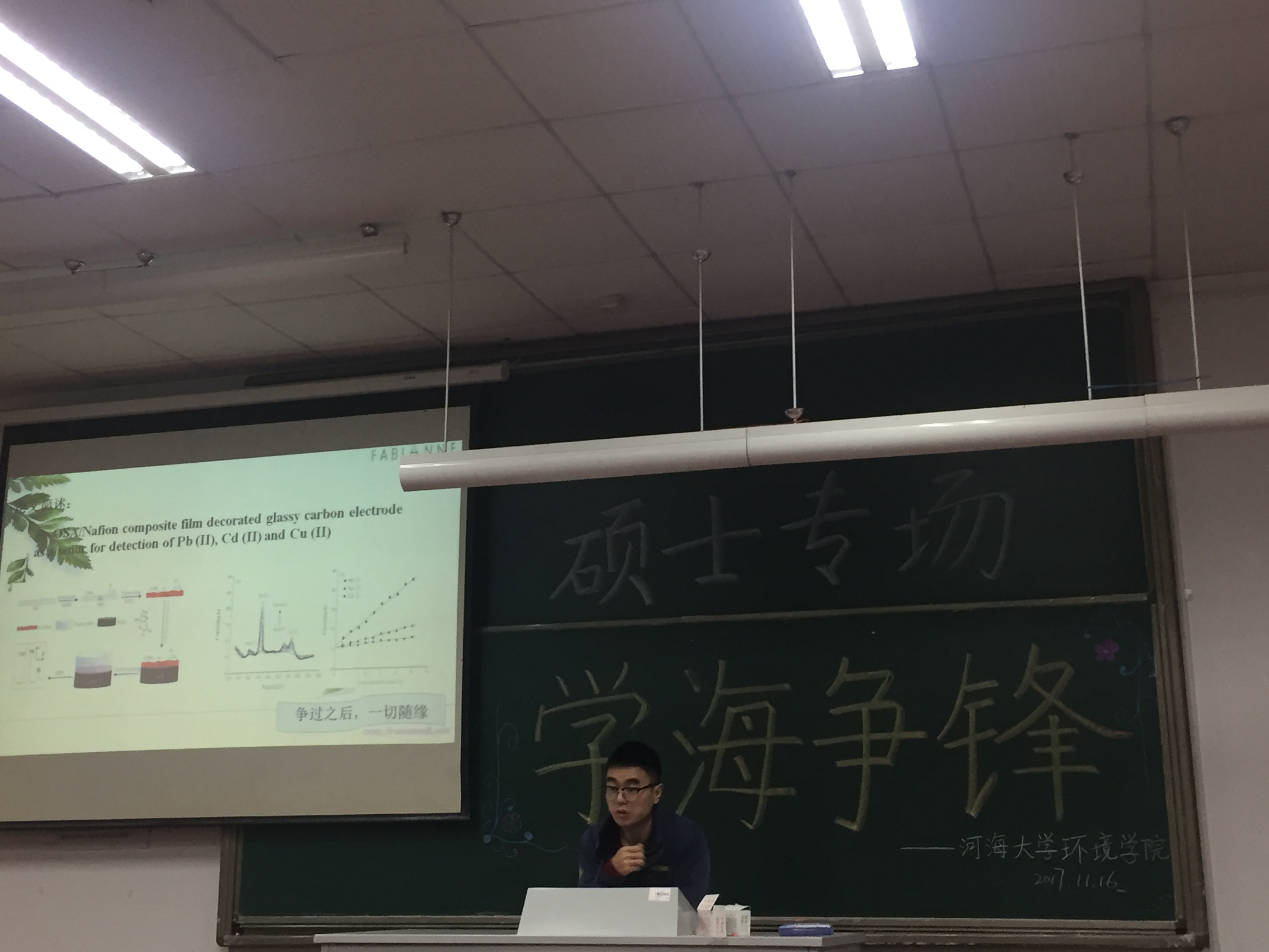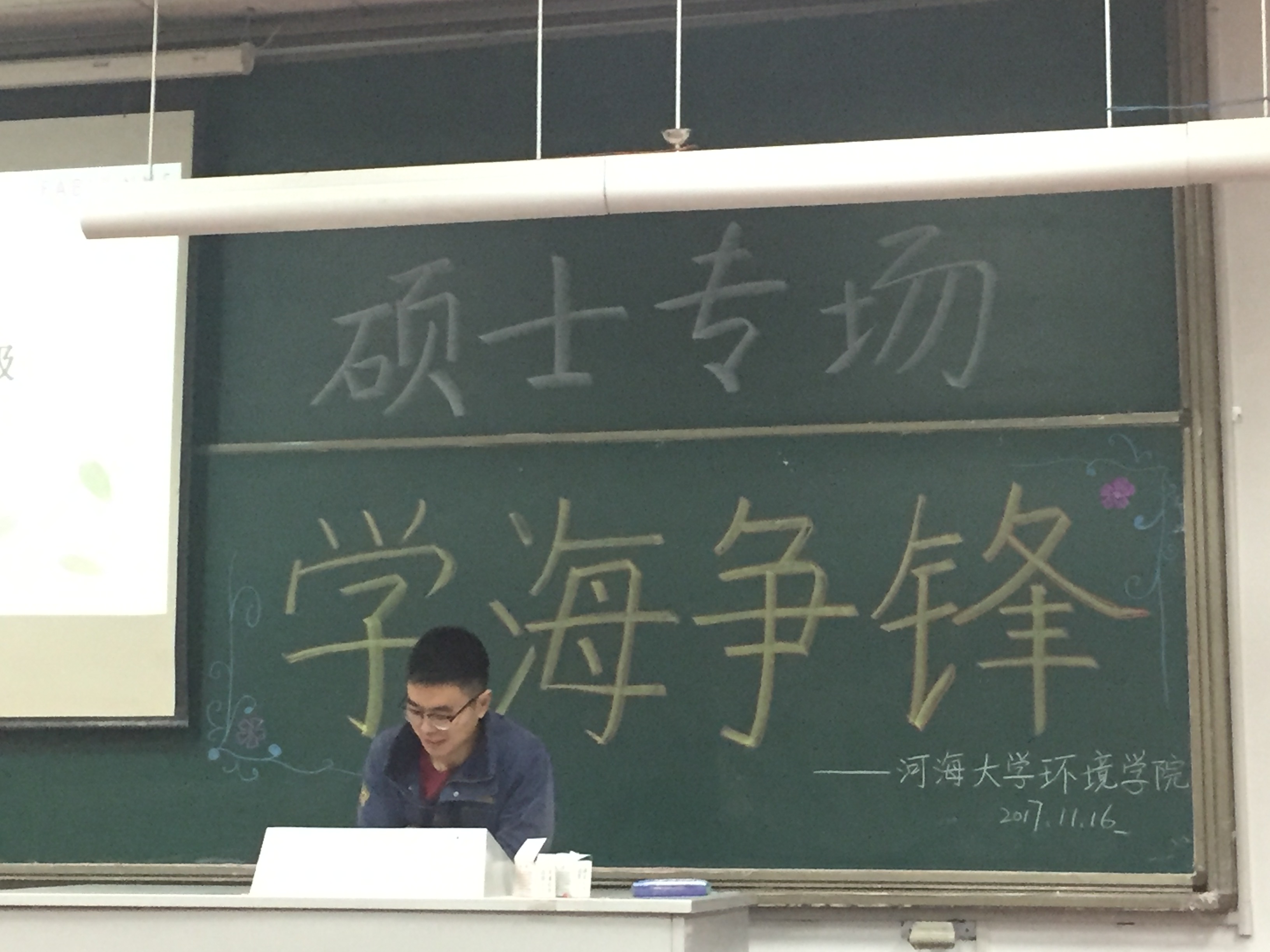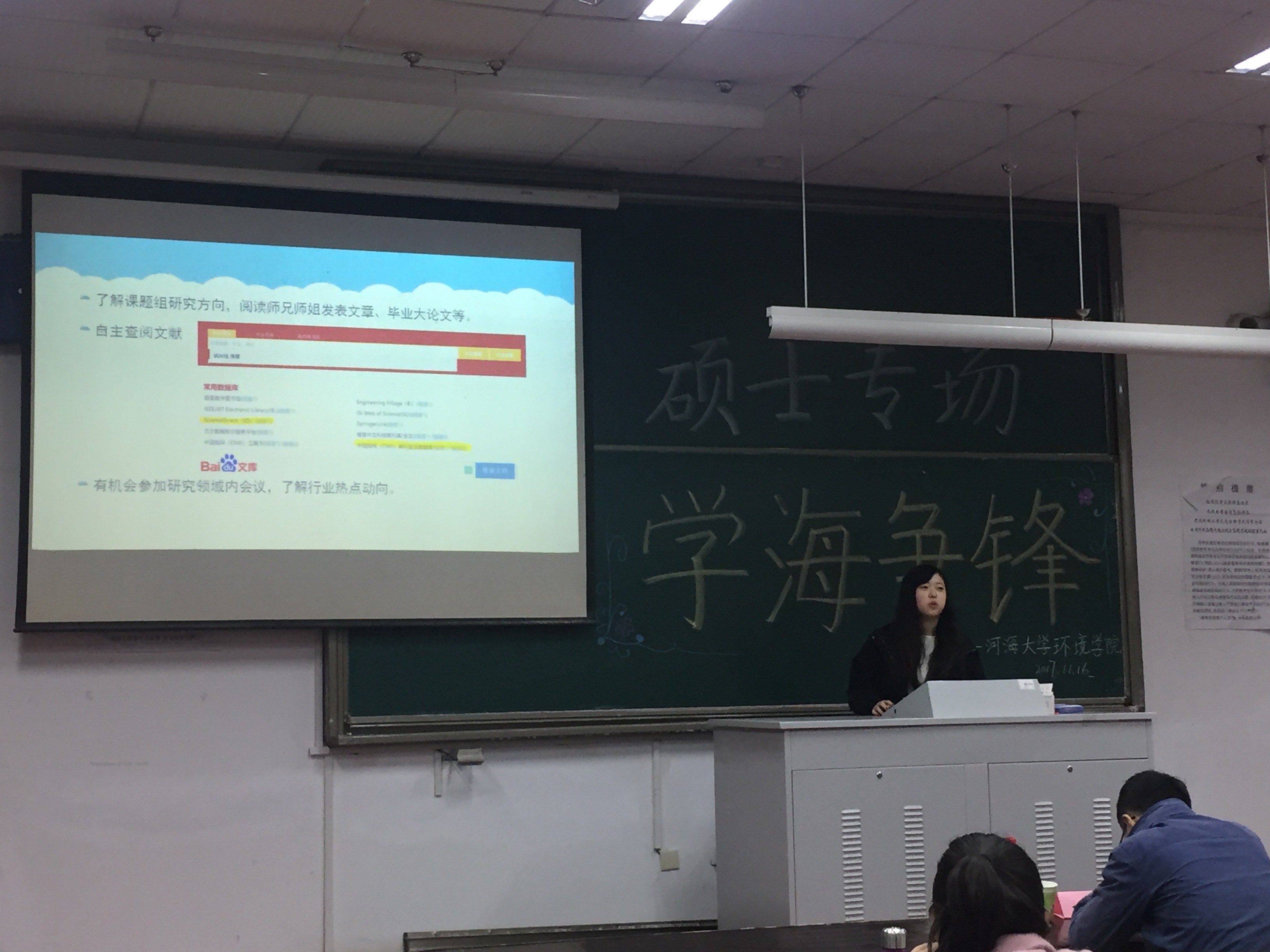 2017年11月16日下午,由国产视频 研会研科协策划并举办的“学海争锋——硕士专场”学术讲座于水利馆B101教室举行。本次讲座的三位主讲均是国产视频 优秀的研究生,都是今年国家奖学金的获得者,分别是16级市政工程专业的曹臻、15级市政工程的张佳男、15级环境科学与工程的沙海涛。