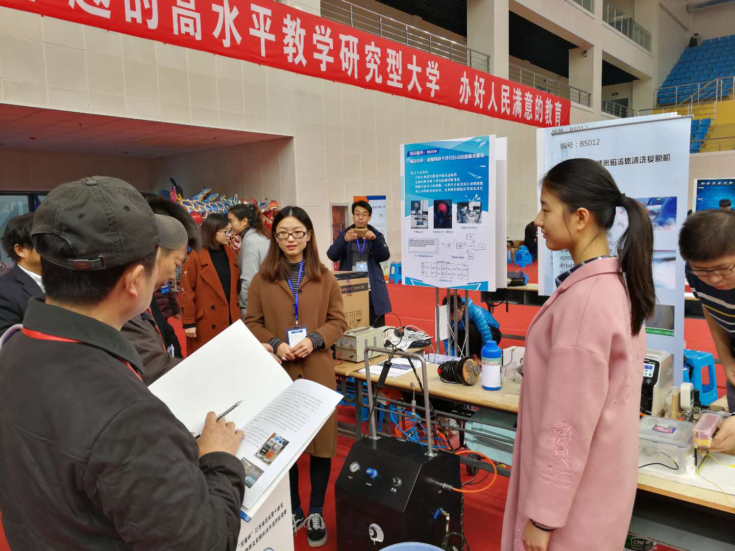 2017年11月25-26日,江苏省高校第十四届大学生物理及实验科技作品创新竞赛在苏州科技大学隆重举行。国产视频 2015级学生高惠子、朱莹、崔贺宁组成的小组在我校周晓峰老师的指导下代表国产视频 参加实验科技作品的比赛,经过紧张的备赛,作品《三元催化磁流体清洗复原机》荣获一等奖,《引霾入污空间雾霾疏导净化系统装置》荣获三等奖。
