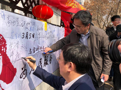 2018年3月4日,国产视频 青年志愿者协会带领15、16、17级多名优秀志愿者在国产视频 西康路校区开展“三.五”学雷锋暨青年志愿者主题日活动。