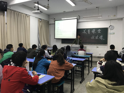 课堂从硬笔书法欣赏开始,老师向同学们展示了很多当代书法家的作品,对书法的老辣之美、刚健之美、丰满圆润之美等一一鉴赏。老师问到同学们来上书法课的目的,绝大多数同学都是抱着能写一手更好看的字的愿望而来。老师将自己的一些书法作品展示给大家,同学们看得很认真,眼神里流露出敬佩和向往之情。