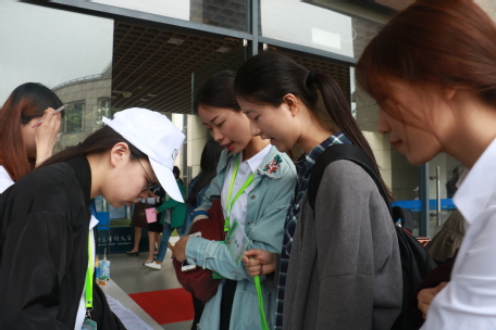 答辩是十点钟开始,团队成员们在外面稍作等待,在等待的时候,团队成员又把答辩的流程进行完整的预演,而在场的老师与其他团队成员也及时提出了自己的建议。在交流和讨论中,很快就到了十点的安检候场时间,由于是封闭答辩,只有团队人员才能进入,其余同学和老师则在场外耐心等待他们答辩结束。中午十二点,团队答辩顺利结束。