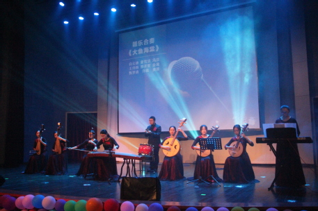 在这之后,白云迪等同学给大家带来了器乐合奏《大鱼海棠》。该民乐团曾获得第五届全国大学生艺术展演活动一等奖,她们用民乐合奏的方式为我们演绎了一首充满深情的歌曲。