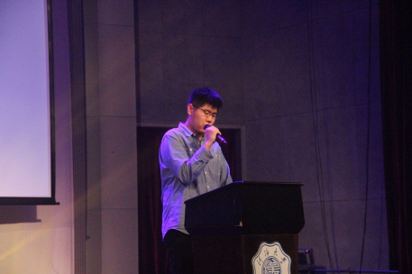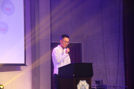 给排水专业的代表姚冯懿同学,他通过大量的数据向我们展示了给排水专业浓郁的学习氛围和丰富多彩的课余活动。