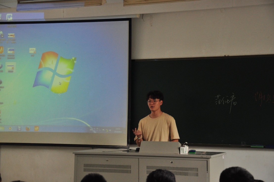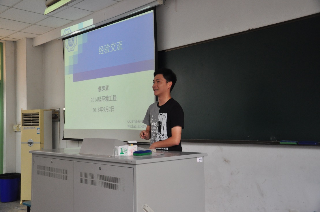接着向大家分享经验的是惠辞章学长,他向大家着重介绍的是考研、保研方面的经验。他希望同学们能够主动了解参与各种学科竞赛、挑战杯、活动等,课余参加公益志愿,提高自身综合能力。