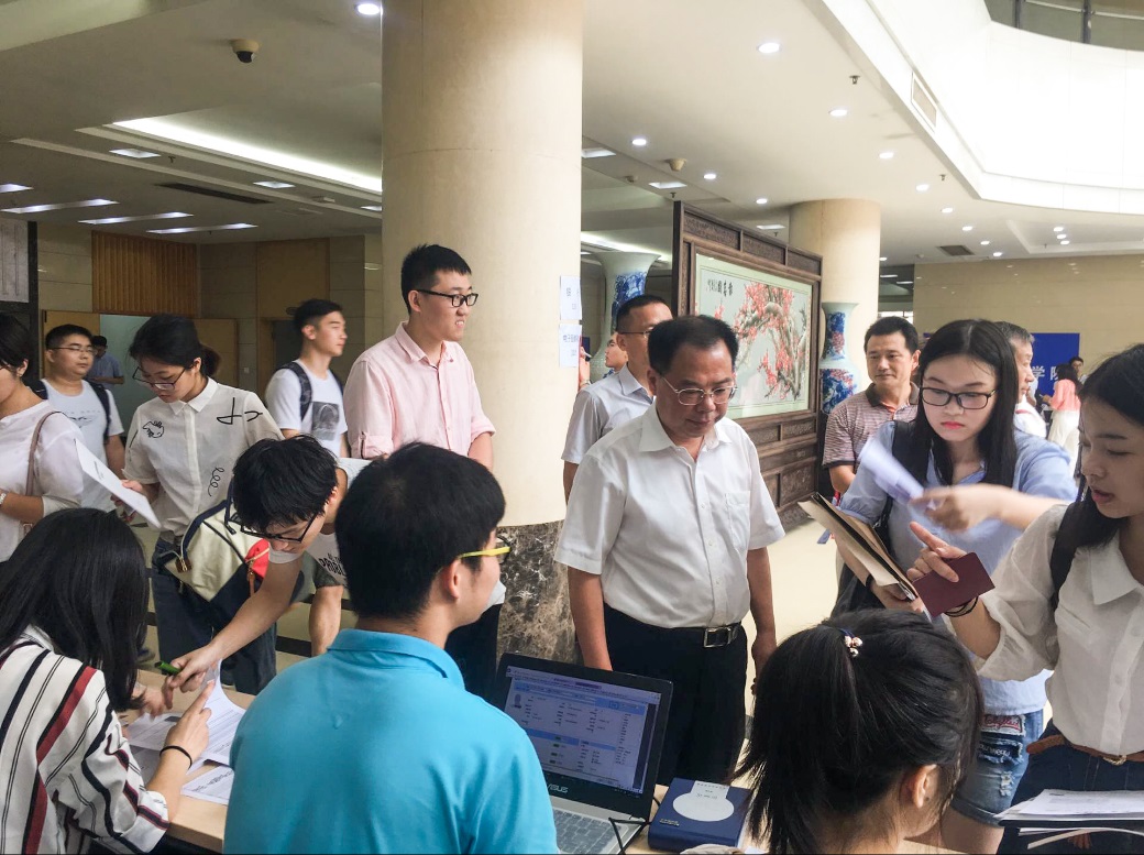 校党委书记唐洪武、校长徐辉、副校长董增川、国产视频 党委书记笪学军、国产视频 党委副书记曹松祥来到新生报到现场慰问工作人员、指导迎新工作。校领导与学院领导在国产视频 报到点详细了解了迎新工作进展情况,亲切慰问迎新一线师生和志愿者们,对他们的辛勤付出给予了充分肯定,鼓励大家以饱满的热情和严谨的态度认真做好服务工作,确保每一位新生能及时、顺利报到。