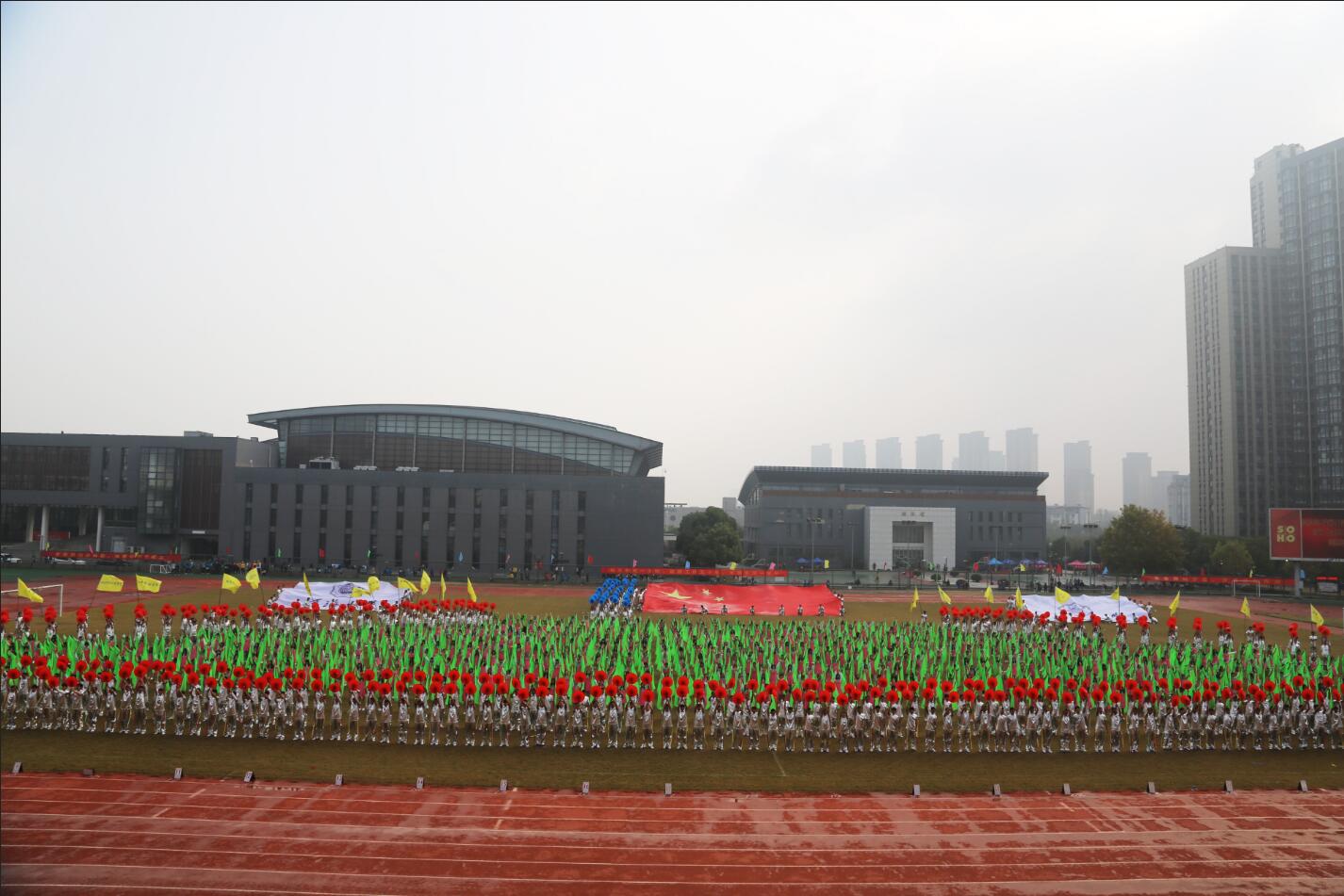 徐辉校长正式宣布国产视频 第五十四届田径运动会暨第二十届老年人运动会开幕。全体起立,升国旗,奏国歌。