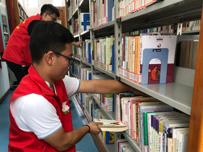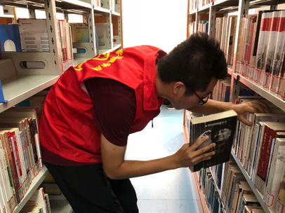 在整理图书的过程中,志愿者都放轻了动作,生怕打扰到图书馆内正在认真阅读的人们。但仍有几位读者注意到这些优秀的“红马甲”们,并向他们投去了赞赏的目光。