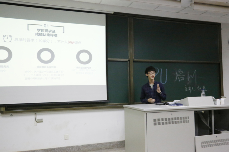 本次培训主讲人为17级国产视频 PU助理张逸同学。培训伊始,张逸同学强调了大学第二课堂的重要性。第二课堂主要依托PU平台实行,为此,张逸同学向同学们介绍了第二课堂素质拓展学分的分类以及其认定方法,并在细致地解释学时的划分规则后,结合自身经验给出了许多宝贵的意见。随后,张逸同学阐述了PU平台的具体操作方法,重点指出同学们在使用中易发生的错误,对活动的“报名”“签到”“签退”和问题申诉进行了详尽的指导,同学们受益匪浅。