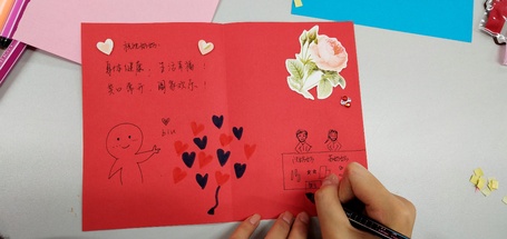 在志愿活动结束之前,志愿者们把自己手作的贺卡都赠送给了老人们。他们表示,收到贺卡时老人们发自内心的笑容是对他们最棒的回馈。