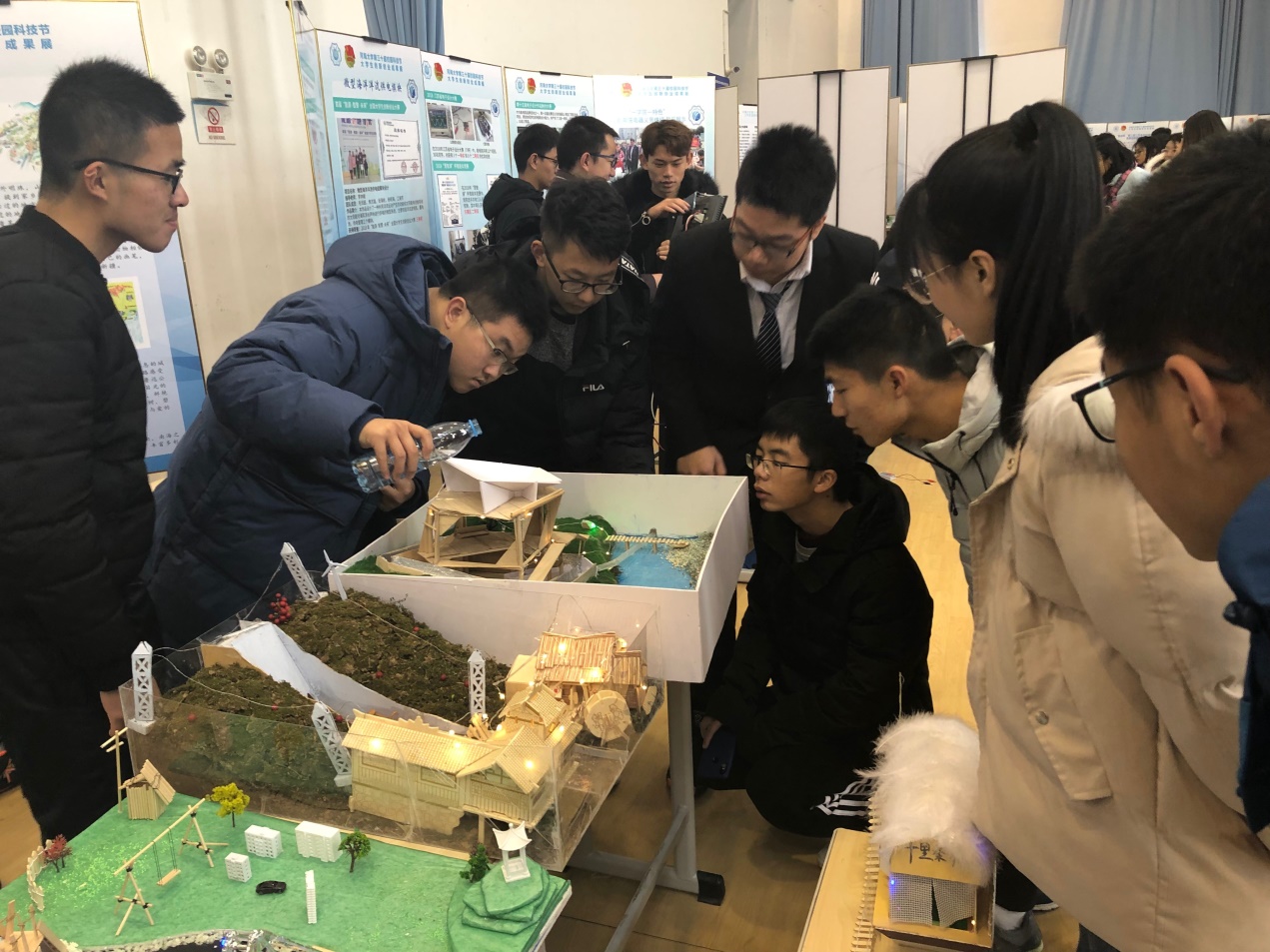 国产视频 科协代表国产视频 参加了这次活动。他们带来了第七届“桨声灯影”沙盘与船模设计大赛的获奖作品和手绘家乡地图比赛的精品成果。此外,国产视频 党委副书记曹松祥和17级辅导员钮青也在现场指导。