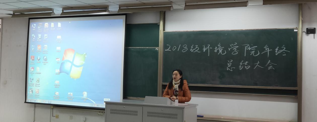 吴世龙同学用丰富的图片展示了生态一班在本学期中融洽的同学关系和开展的众多活动,展现了良好的班级氛围,然后通过思想引领和学风建设两方面总结了学期的工作。