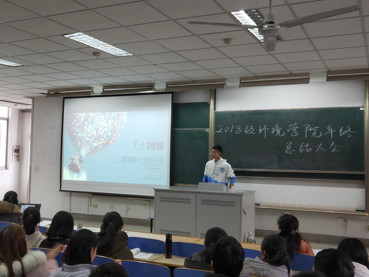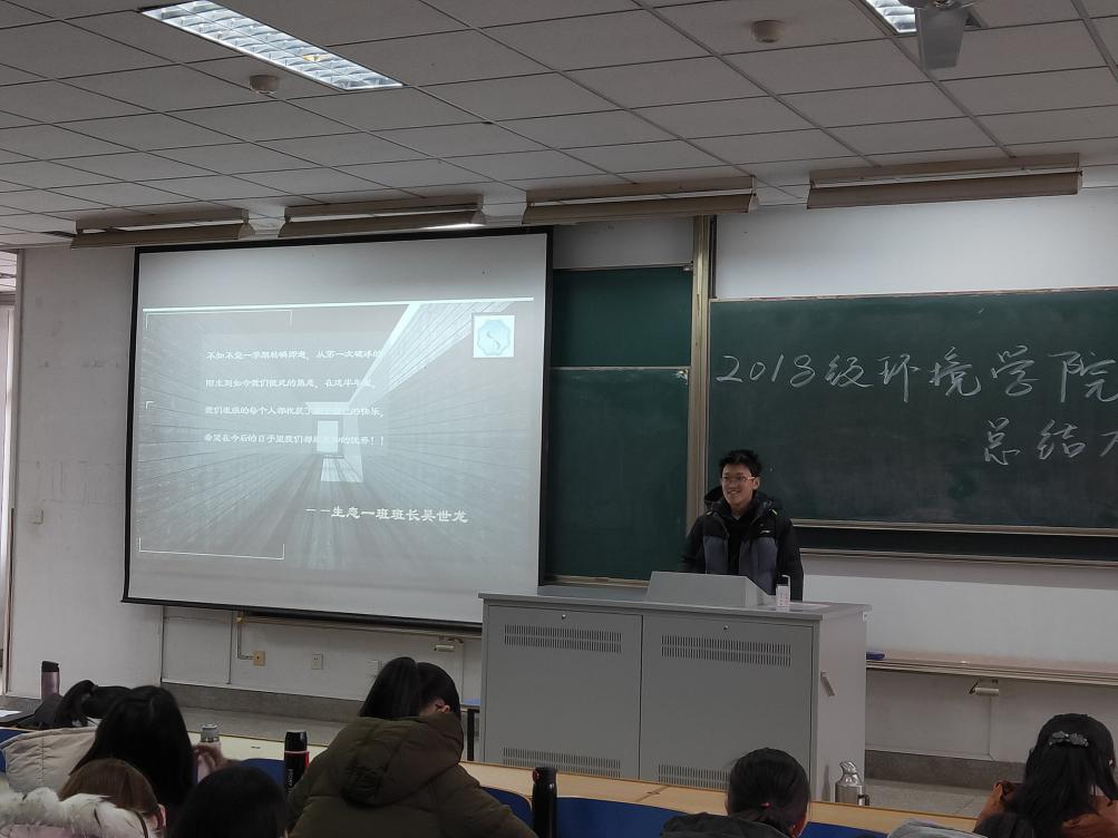 周郁同学以工作回顾、成果分析、班委总结及未来规范三方面总结本学期的工作。环工一班通过丰富的班级活动和严谨的工作安排,以及及时的问题分析和解决,使同学们都在学习和生活上有了不同的提升。