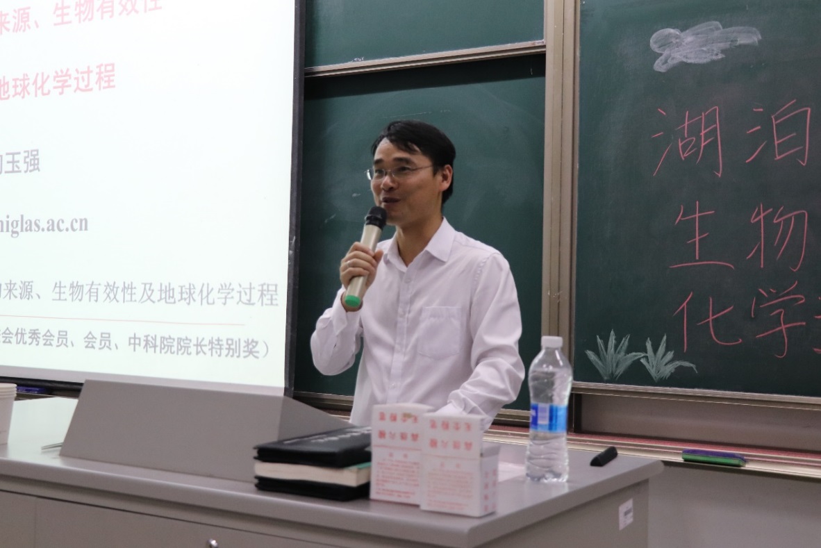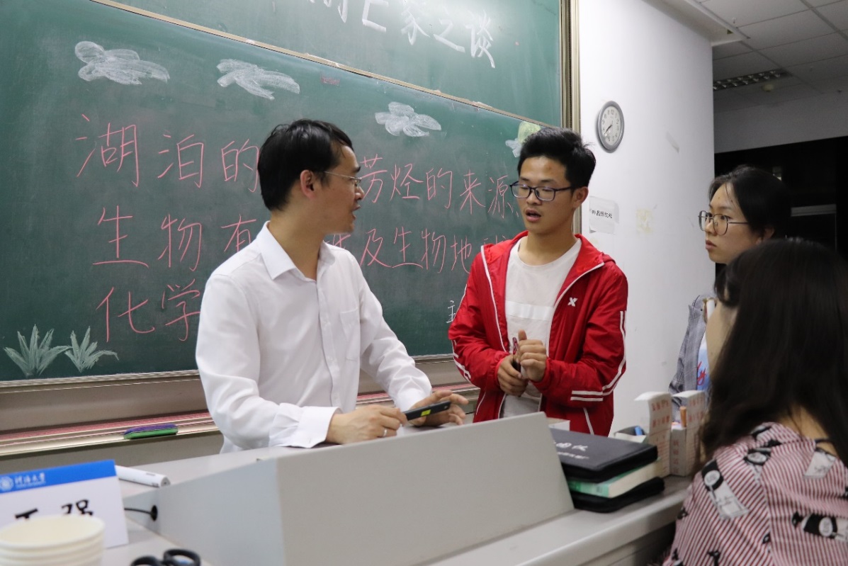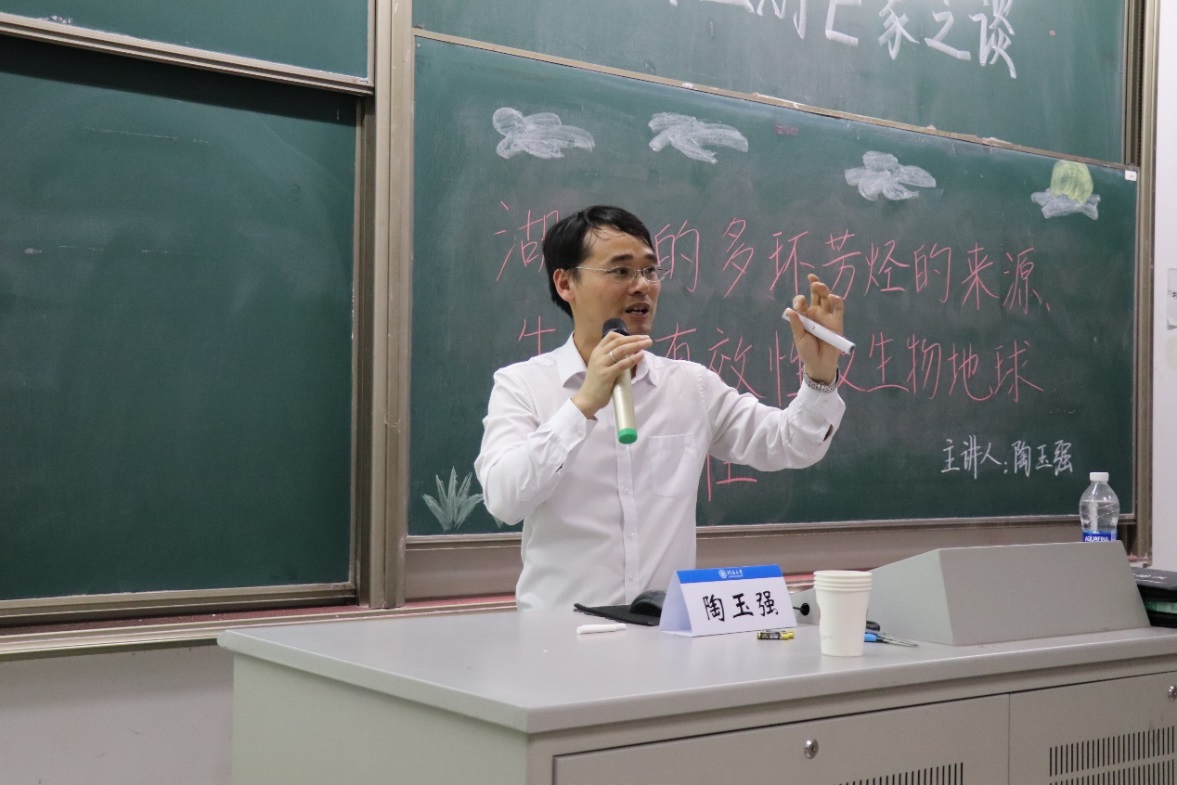 在讲座的最后,陶博士介绍了自己所在的环境有机地球化学课题组所的研究方向,邀请感兴趣的同学加入,可见他对培养同学们关于湖泊研究兴趣的重视。
