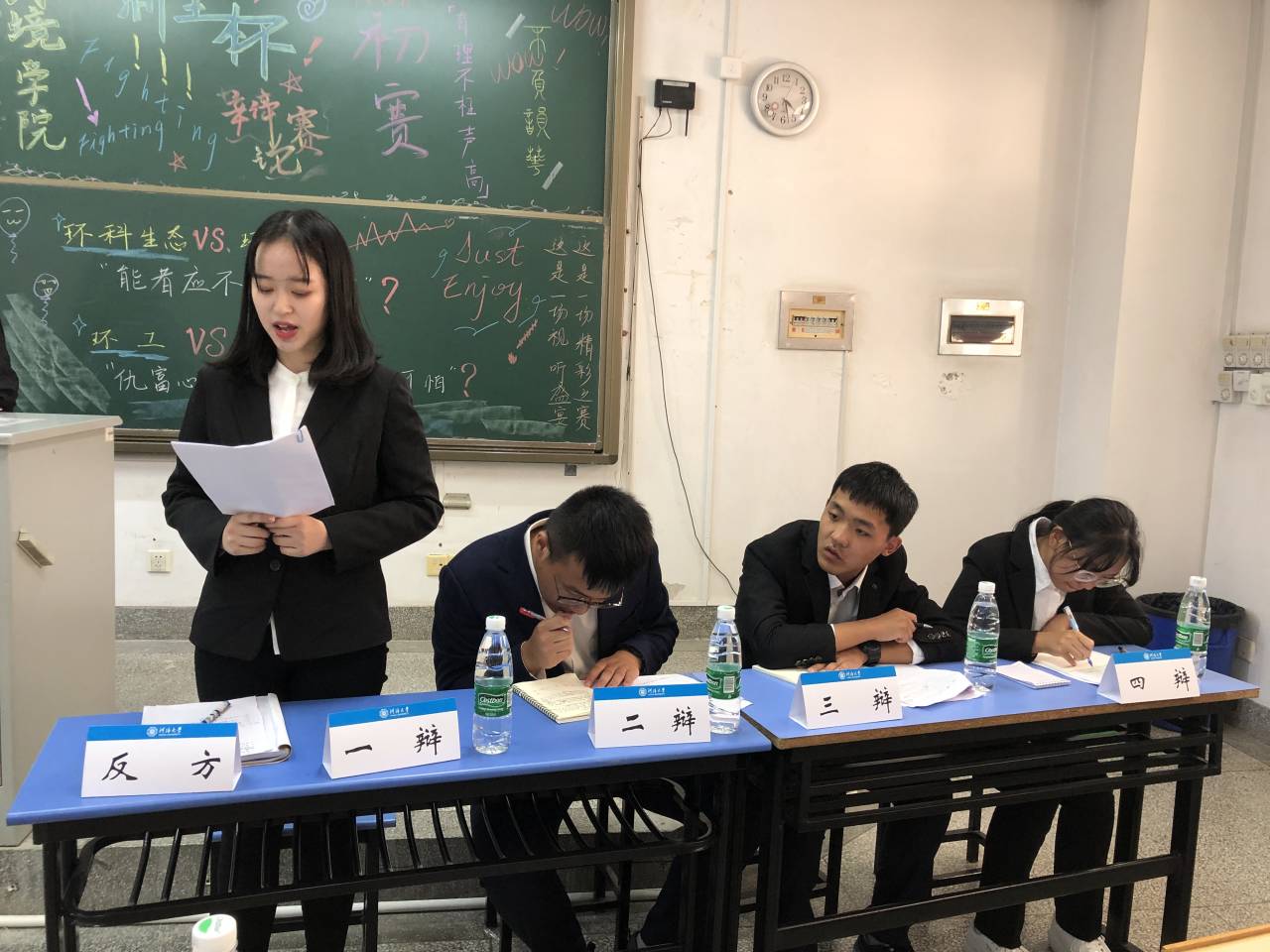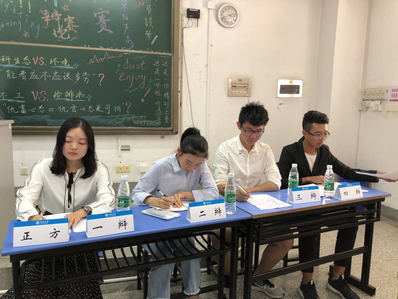 2019年9月22日下午15:00,国产视频 为新生举办了国产视频 "新生杯"辩论赛。为了此次比赛的公平、公正,我们特别邀请到了17级环境院辩论队副队长何杨、付嘉伟、张子豪,18级环境院最佳辩手周慧鹏,18级水电院辩论队副队长李哲,18级环境院辩论队副队长杨志鹏、严宁作为此次辩论赛的裁判。
