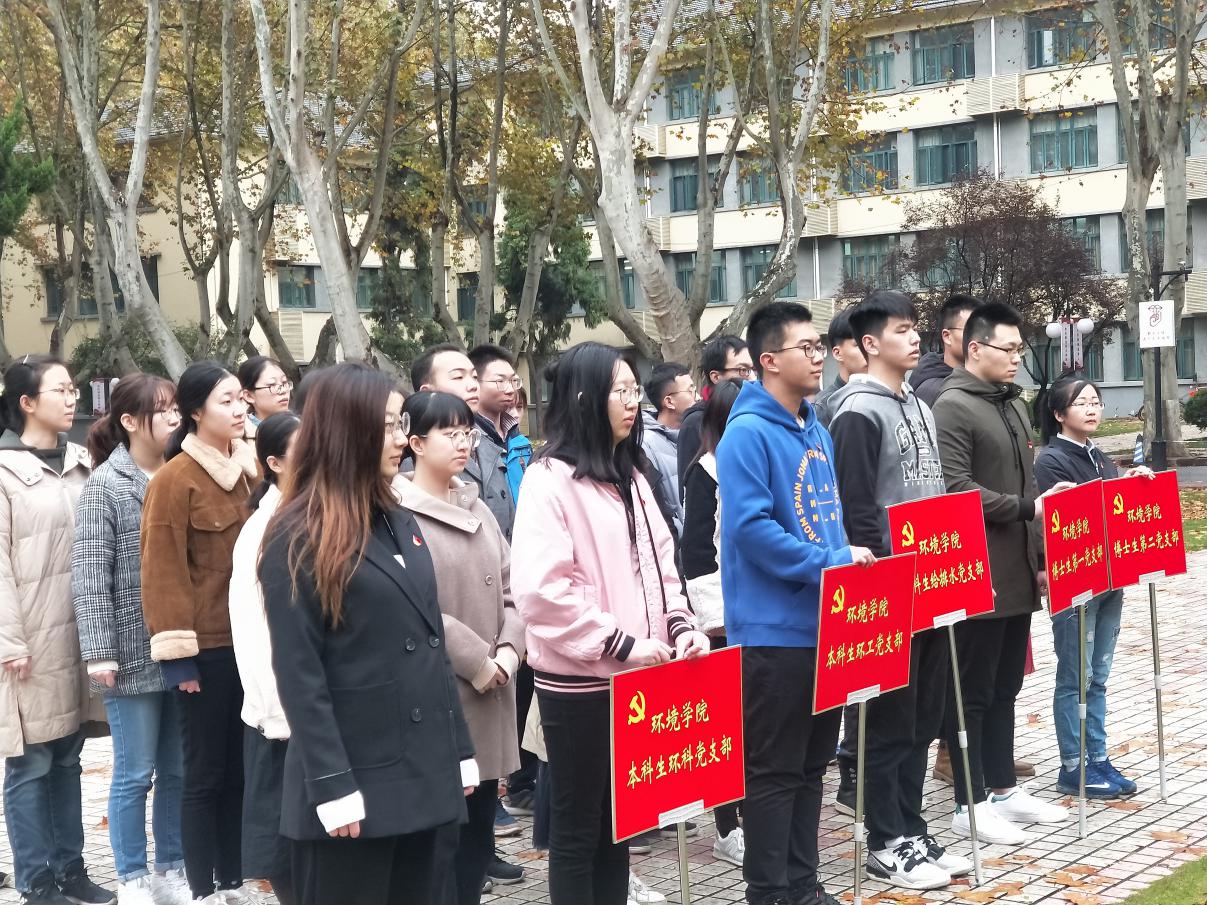 仪式第三项,国旗下全体党员宣誓。16级同学王亚宁同志领誓,全体党员宣誓:大家右手抱拳,严肃地举起右手过肩。“我志愿加入中国共产党,拥护党的纲领,遵守党的章程,履行党员义务,执行党的决定,严守党的纪律,保守党的秘密,对党忠诚,积极工作,为共产主义奋斗终身,随时准备为党和人民牺牲一切,永不叛党!”在国旗的庄严注视下,大家将对祖国的热爱、对共产党的敬仰融入到誓词之中,誓将为共产主义建设奋斗终生。