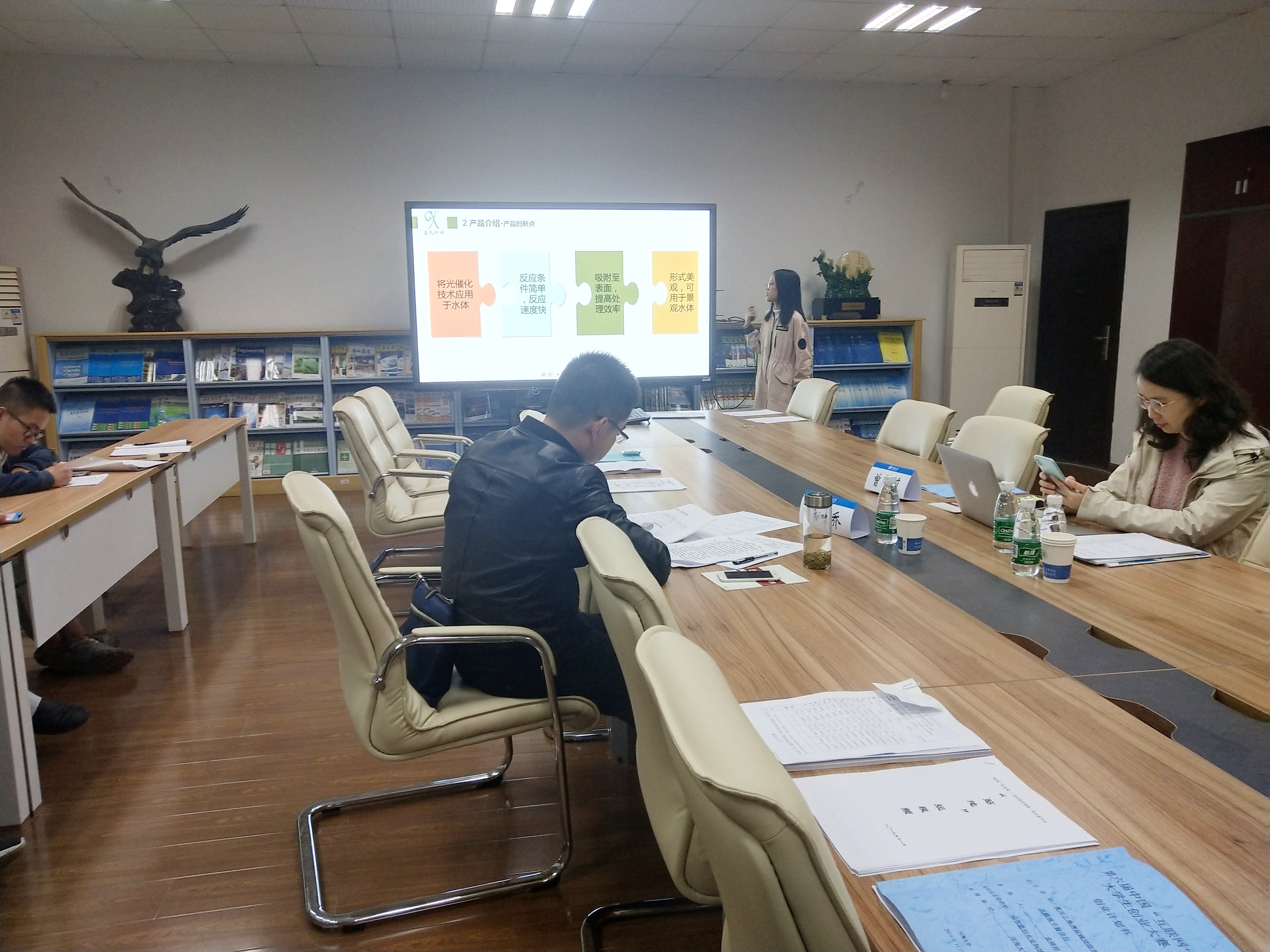 本次选拔答辩分为PPT展示和评委提问点评两个环节。在PPT展示环节,9组参赛选手围绕项目背景、技术优势、发展规划等多个方面展开答辩,具体清晰地介绍了项目情况,充分展示了项目特色及已有地专利成果。