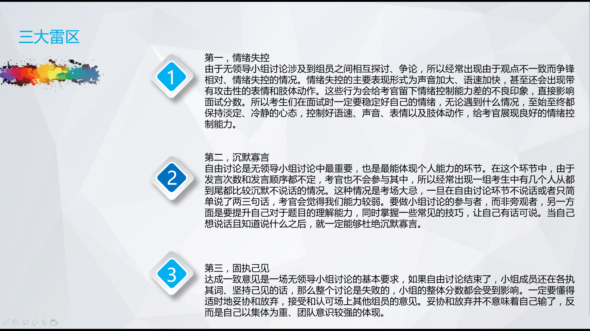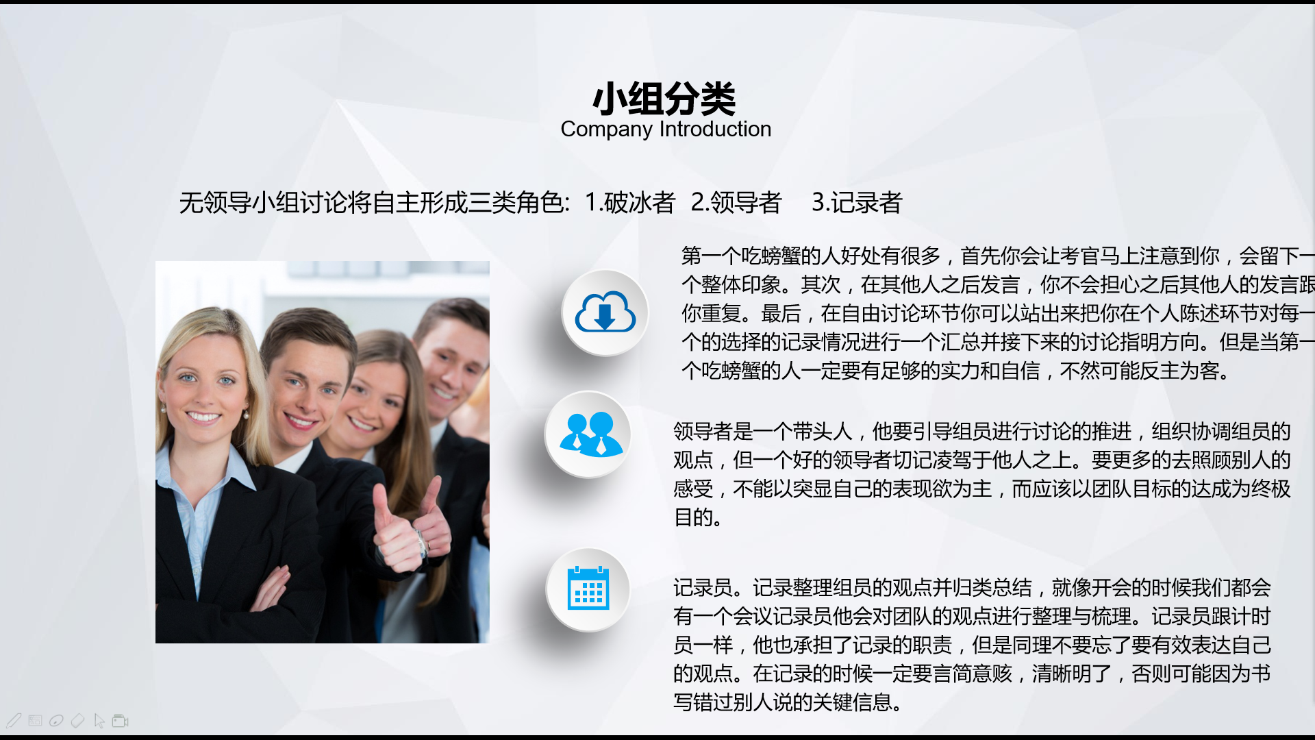 陈老师首先为大家讲授的是“无领导小组”的相关内容,旨在帮助各位同学顺利通过今后的各类面试。