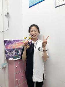 作为学校的一名乒乓球高水平运动员,她最开心最荣幸的莫过于参加并且代表学校获得第二十二届中国大学生乒乓球锦标赛特招组女子团体第三名,实现了我校乒乓球女子团体全国0奖牌的突破。