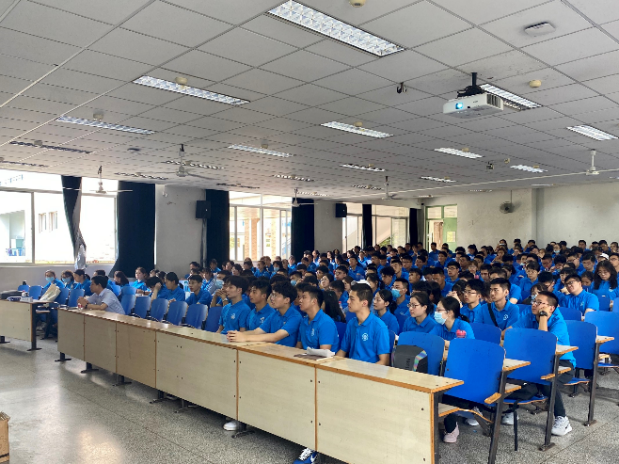 接着徐主任着眼大学校园生活的一系列细节,给同学们提出了一系列具体可行的建议。他告诫同学们不要轻易相信在校学生的推销,不要在网络上发布不当言论,教授同学们在火灾中如何安全开门,如何安全使用吸附丙烷灭火器,如何得当处理宿舍和外卖快递盗窃,建议同学们调整心态,保持心理健康。徐主任还特别叮嘱男同学们在与社会人员起冲突时不可自行解决,要在异性在场时保持克制。讲座的最后,徐主任为同学们播放了重大安全事故教育视频。接着徐主任以一位家长的身份向同学们送出了自己的祝福,希望同学们有一个平安的大学生活。