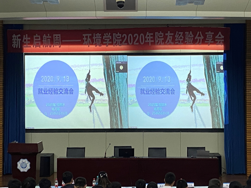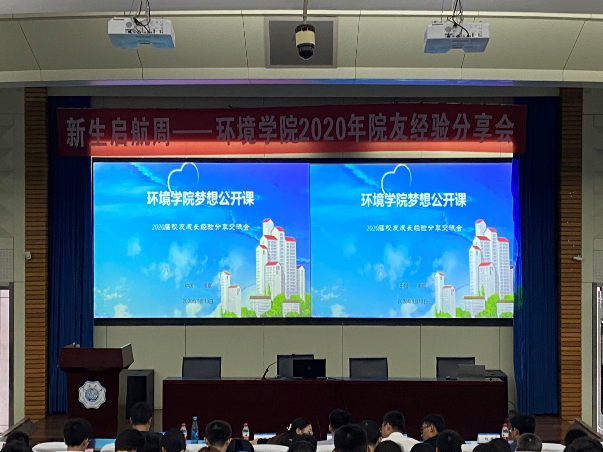 9月13日下午2:00,国产视频 梦想公开课——2020届校友成长经验交流分享会在江宁会议中心成功举办。20级辅导员及全体新生参加本次活动。活动共邀请了8位环境院20届优秀毕业生,面向20级新生以线上线下两种形式分享了自己的成长经历,他们或取得保研资格,或成功考研,或出国出境深造,或参加工作。本次活动由计思怡同学主持,旨在借优秀院友们的成长经历使同学们加深对大学生涯的了解,在本科阶段树立明确的目标。