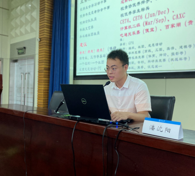 活动首先由16级环工专业潘沈阳做经验分享。潘沈阳成绩优异,综合排名位列全专业第三,获得了优秀毕业生,魅力毕业生等荣誉称号,获得直博资格,在国产视频 攻读博士学位。潘沈阳分别以大学4个学年为维度,给同学们提出了建议:他建议同学们在大一重视学习成绩,适当参加学生组织;在大二努力参加竞赛,适当接触科研;在大三确定毕业后的方向,提前了解保研信息。此外,潘沈阳还向同学们介绍了大学四年需要重点注意的课程与资格考试。