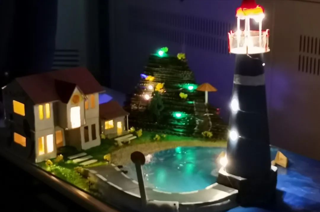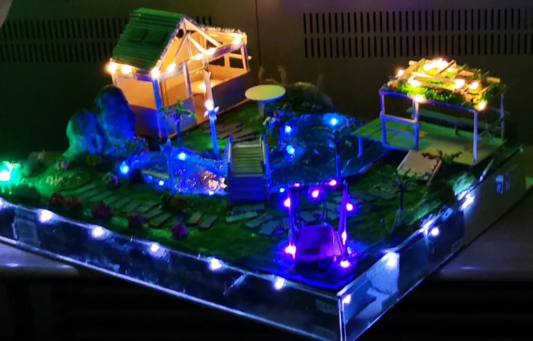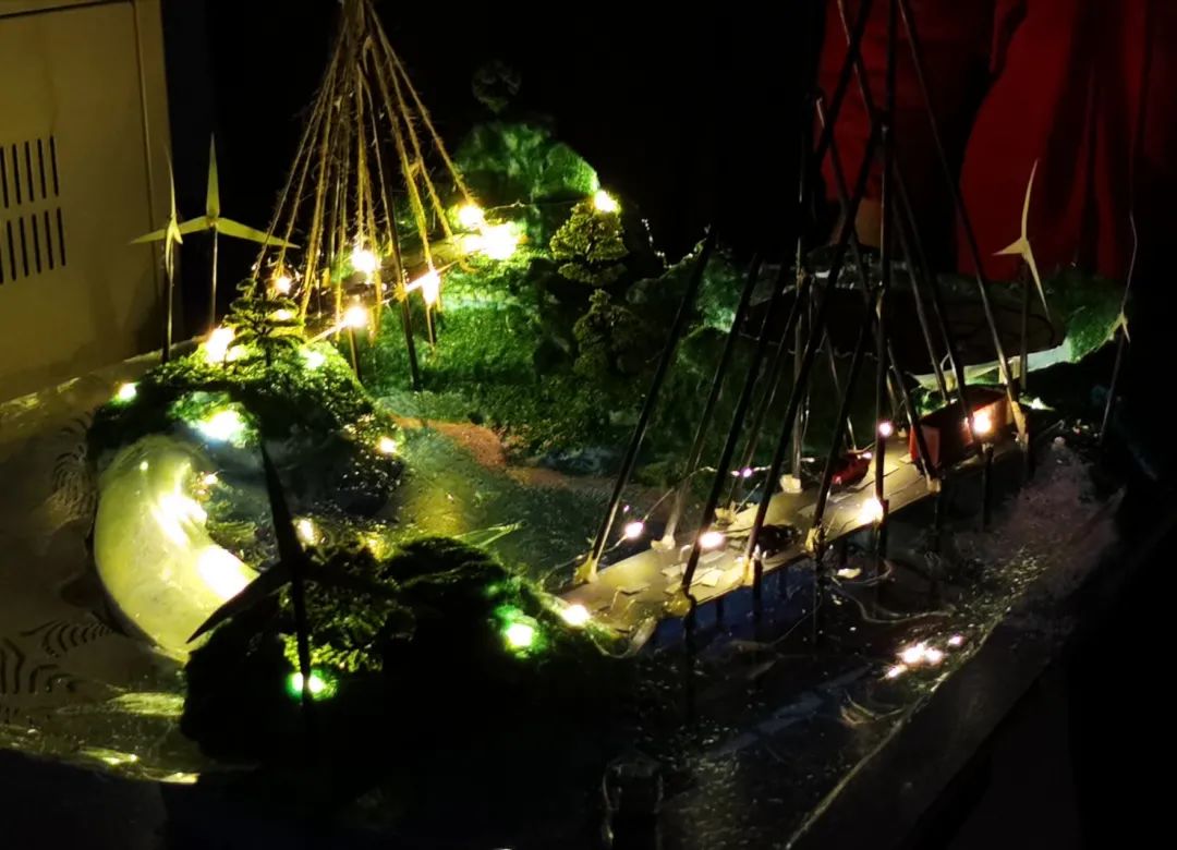 选手们在注重作品的外表和内涵的同时也格外地注重环保,各个小组的选材都着眼于生活中的可回收利用材料,实现了废物再利用,践行着“绿水青山就是金山银山”的理念。在灯光的照射下,一个个沙盘作品美轮美奂,展现出它们独特的魅力。在参赛选手展示完各自的作品后,评委们也从作品的设计和细节等方面提出了表扬和建议,为参赛选手进一步的改进作品提供了宝贵的指导。