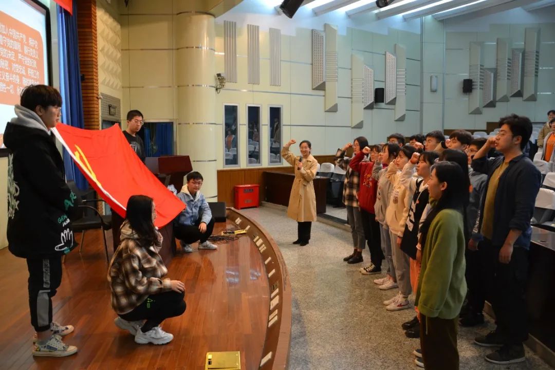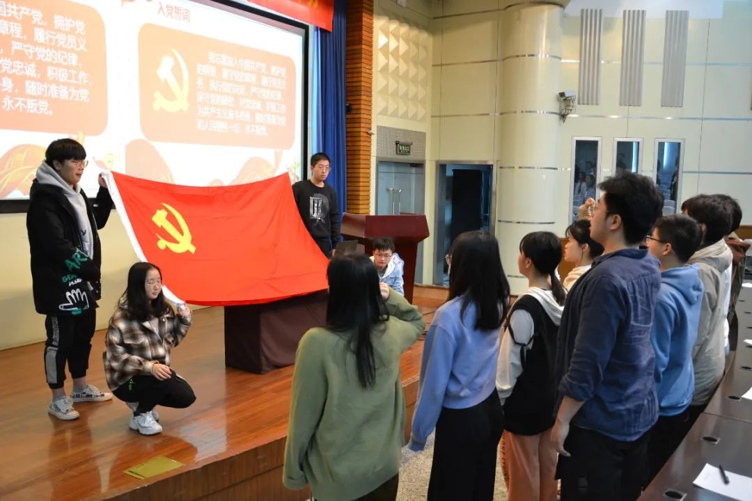 所有党员和预备党员面对党旗,肃然宣誓:“我志愿加入中国共产党,拥护党的纲领,遵守党的章程,履行党员义务,执行党的决定,严守党的纪律,保守党的秘密,对党忠诚,积极工作,为共产主义奋斗终身,随时准备为党和人民牺牲一切,永不叛党。”一句句誓词掷地有声,表达出党员们对正式加入中国共产党的坚定和决心。
