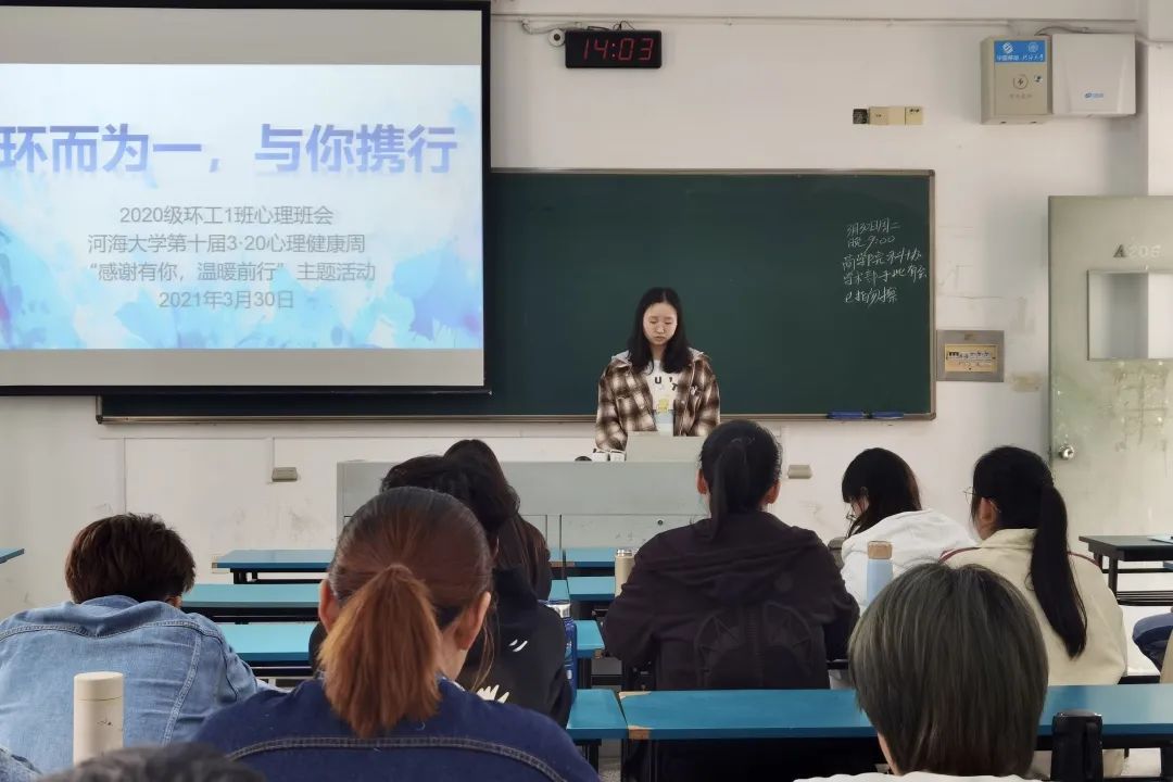 首先,环工一班心理委员向同学们介绍3·20心理健康周主题活动,并阐明开展此次班会的目的和意义。