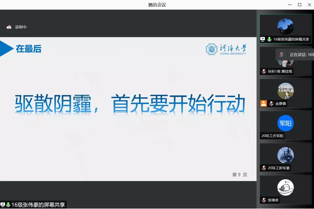 张伟豪讲述了自己从大二开始转变的经历,用自身经验提醒同学们把握当下,关于专业课、证书、申请留学,他向学弟学妹们提出了自己的一些看法,建议同学们有了目标就要坚定。最后,他用“驱散阴霾,首先要开始行动”勉励广大同学。