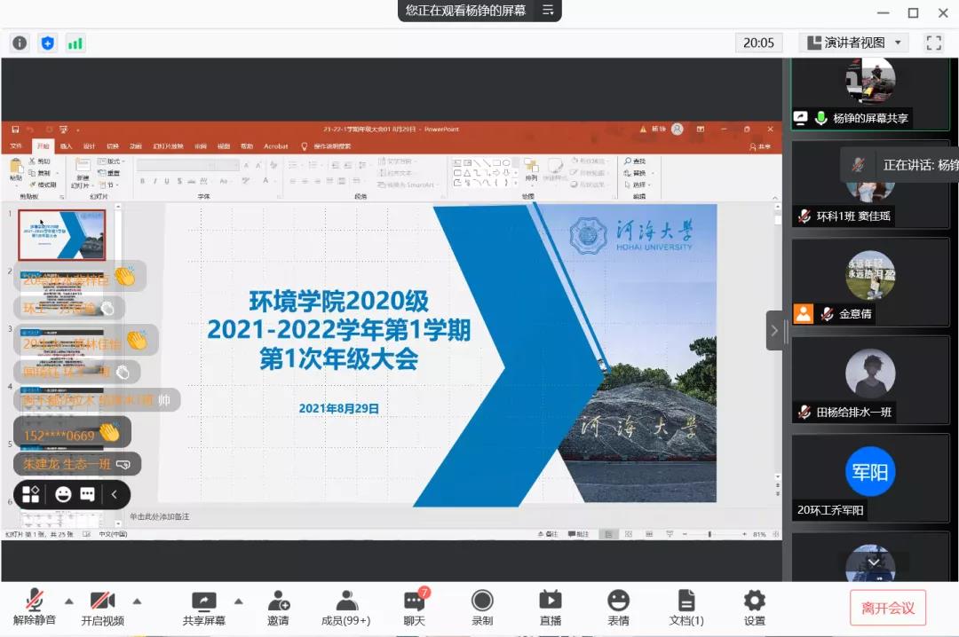 8月29日,国产视频 2020级在线上召开2021-2022学年第一次年级大会暨专业分享会(第一场),会议由20级辅导员金意倩主持。