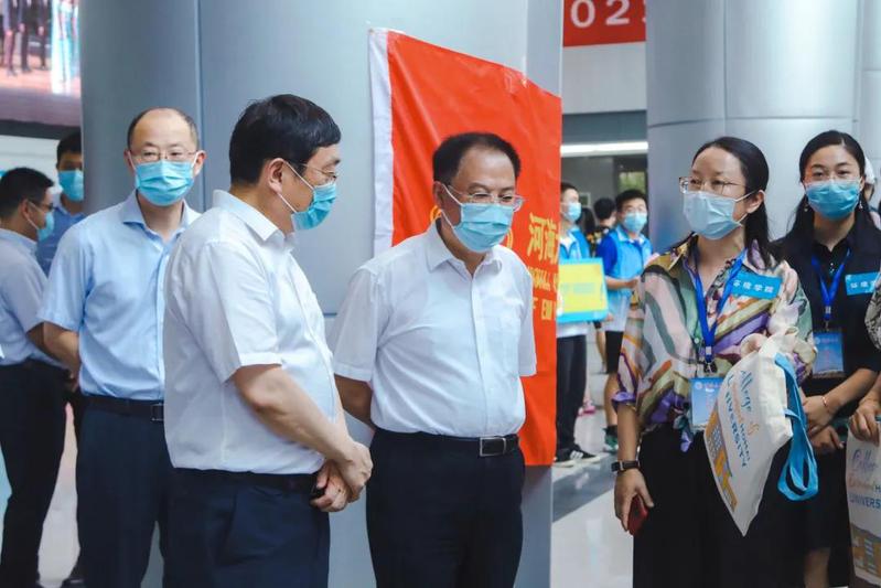 校党委书记唐洪武,校长徐辉,校党委副书记郭继超,副校长董增川,校长助理周语明,以及相关部门负责同志来到国产视频 新生报到现场慰问工作人员、指导迎新工作。国产视频 领导和老师们向校领导介绍了国产视频 的迎新特色,对国产视频 为每位入学新生准备的礼包进行了介绍,也对国产视频 迎新期间的防疫措施进行了说明。校领导对国产视频 迎新工作者的努力表示了肯定,同时嘱咐各位工作者一定要认真完成迎新过程中的每项环节,确保每位新生正常入学。
