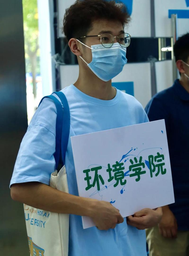 环境院的志愿者们在南门门口开始了新生入学迎新活动。现场准备了矿泉水和各类防疫物资,志愿者们满怀一腔热情,为新生引导路线并答疑解惑。