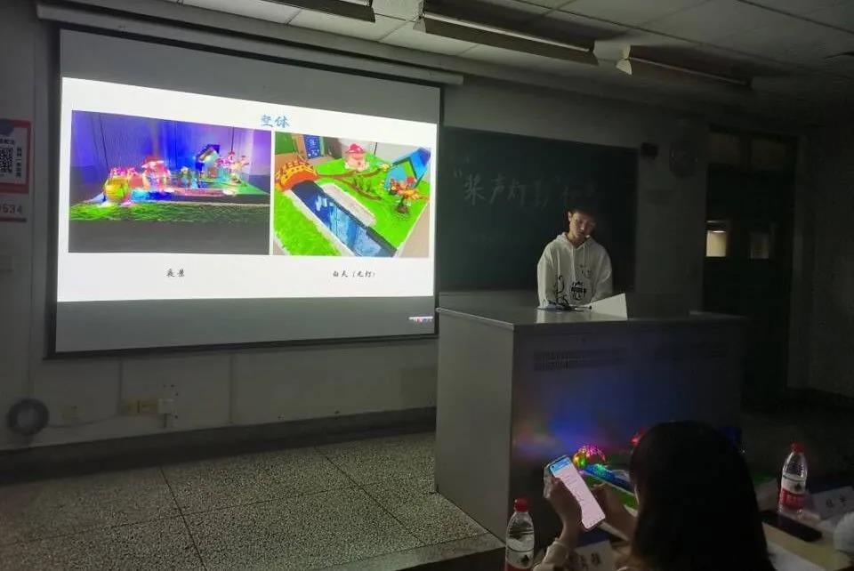 桨声灯影,取自中国著名文学大家朱自清的《桨声灯影里的秦淮河》,本次比赛旨在利用作品表现出对环保的关切、对于水与光以及结构之美的理解。参赛选手们结合比赛主题与国产视频 的绿色环保宗旨,利用环保材料进行作品制作。同学们依次上台进行展示与答辩,沙盘作品展现出灯光的色彩绚丽、变化多端,并将水与光完美结合;船只作品在静水中展现其一定的稳定性,美观大方、颜色优雅。评委从环保、作品表现、难易程度和细致程度对参赛作品进行打分,与同学们交流作品内涵意义并给予鼓励。