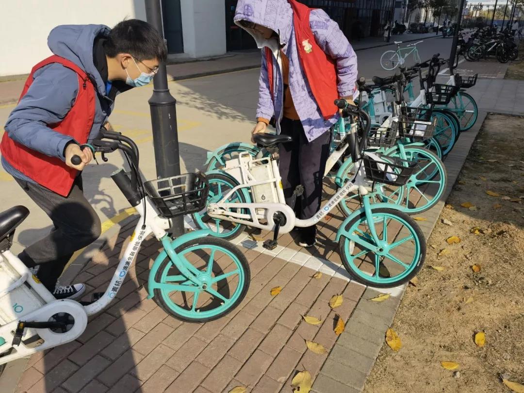 为了宣扬文明精神,共建文明校园,11月17日下午,给排水一班全体同学在校园内组织志愿者进行整理摆放共享单车活动。同学们将校内乱停乱放的共享单车一一扶正并且放回原位。摆放共享单车不仅仅是一项志愿服务,更是为了提醒同学们,文明用车,将共享单车停放到正确的位置,既方便自己也方便他人。共享单车作为校园的公共资源,每个人都有义务爱护它,大学生作为最具活力和创造力的高素质群体,更应该积极宣传、主动践行文明的骑行行为。
