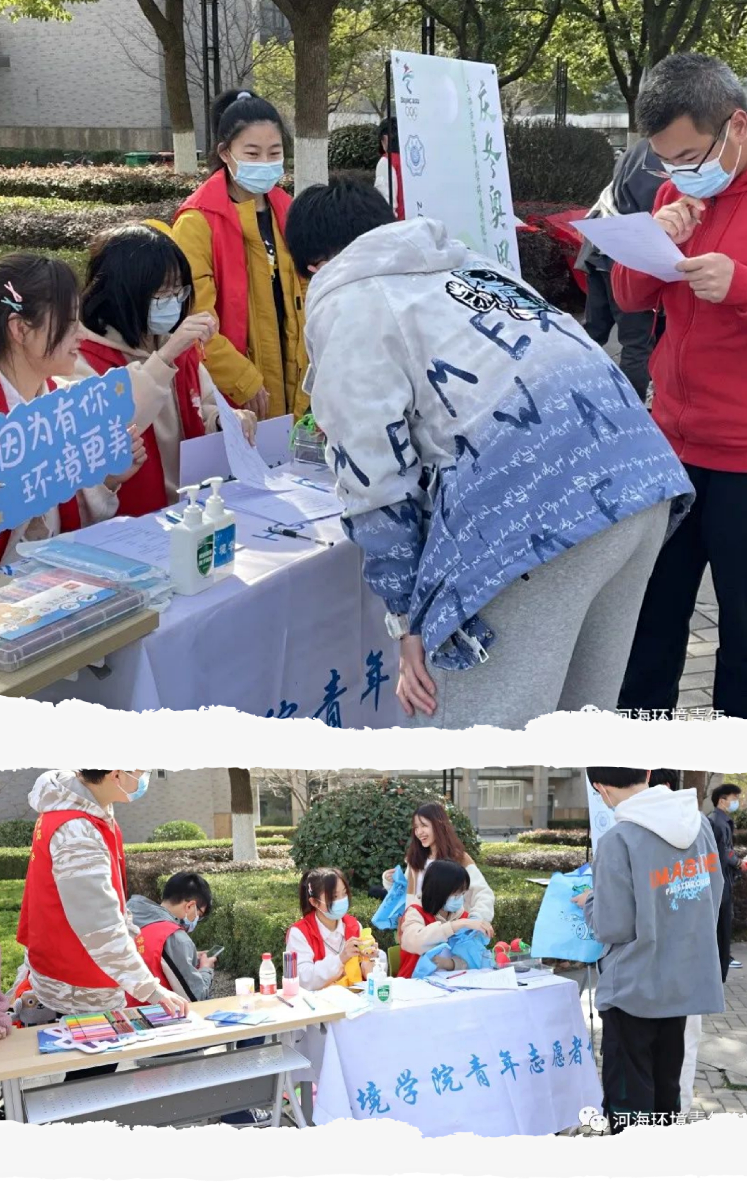 环境院青协通过有奖问答这种别出心裁的方式,巧妙地调动起同学们对于学习环保知识的积极性。同时青年志愿者们特意选择了北京冬奥会这一热门话题,带领同学们探寻其背后前卫的环保理念。题目的设计与冬奥会环保理念息息相关,诸如“环保冰面“的制冰技术、比赛场地的多级应用和冬奥火炬的环保型可燃材料等,这些注重于点滴的环保措施使得同学们大开眼界,并且进一步感受到自己所学专业与生活的密切联系。青协准备了环保纸袋作为奖品,现场配有的水彩笔给予了获奖者自己DIY环保纸袋的机会,进而让保护环境的理念根植于心。在志愿者与同学们之间积极互动中,环境学子们将雷锋精神贯彻落实到自己擅长的领域,通过对环境事业做出的贡献来造福社会。
