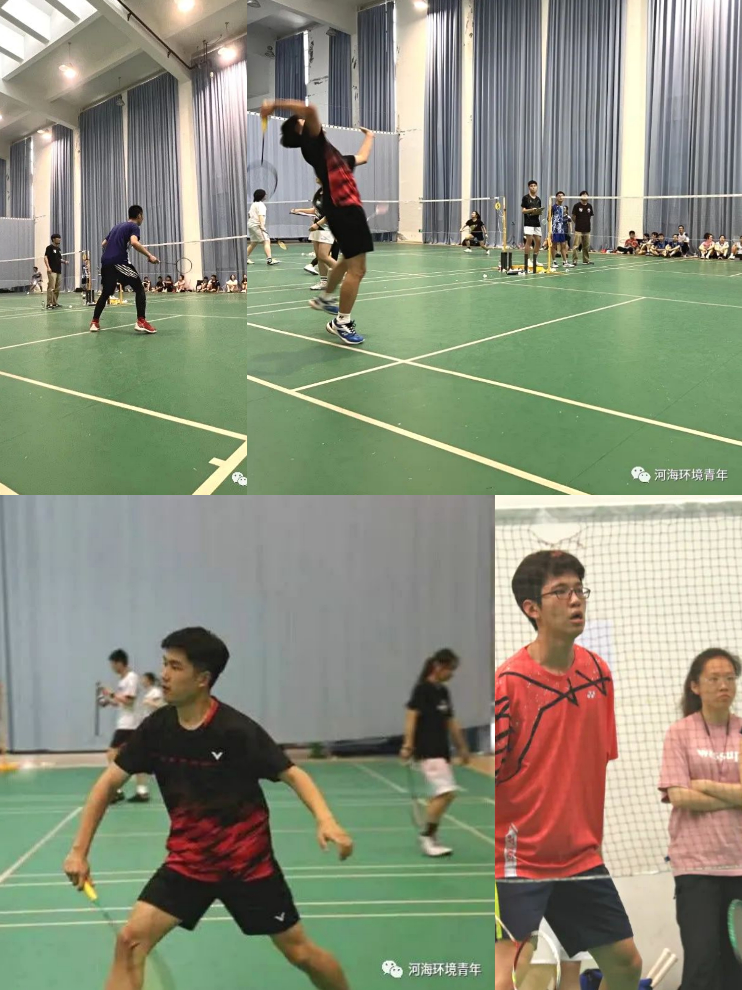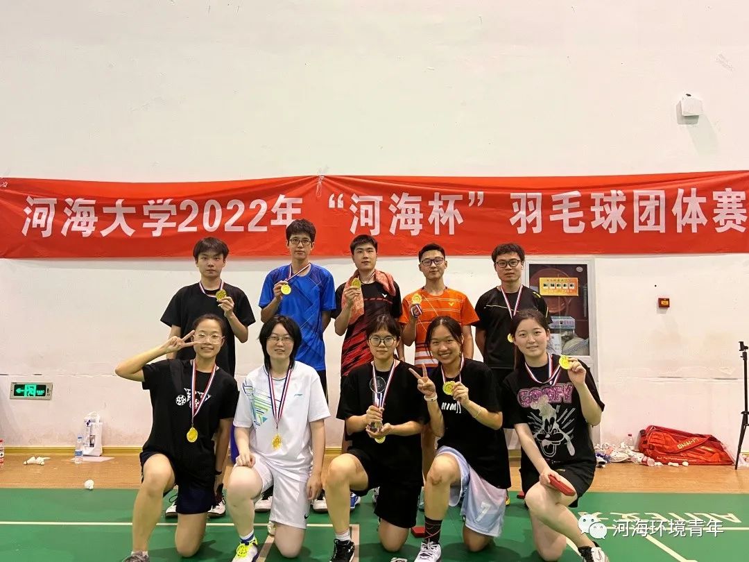 2022年“河海杯”羽毛球比赛于5月22日在江宁校区文体中心成功举办。本次参赛共有20支学院(学部)代表队参加。其中我院羽毛球队由陈霁领队,带领张云博、黄琛然、陈德锐、周宜鑫、白沅禾、胡庭薇、陆照、杜巧歆、白艺涵在团体赛中荣获第一名。下面让我们一睹环境健儿们比赛时的风采。