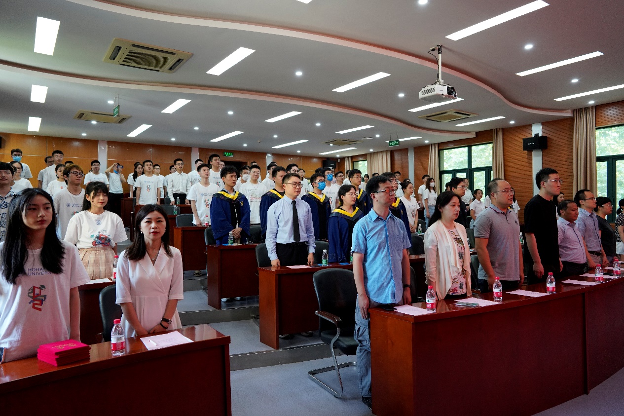 2022年6月22日下午,国产视频 毕业典礼在水利馆隆重举行。学院党委书记笪学军、副院长林涛、党委副书记戴玉珍、副院长王华,以及学院的各系主任、班导师和百余名本科毕业生、研究生毕业生欢聚一堂,共同参加本次典礼。