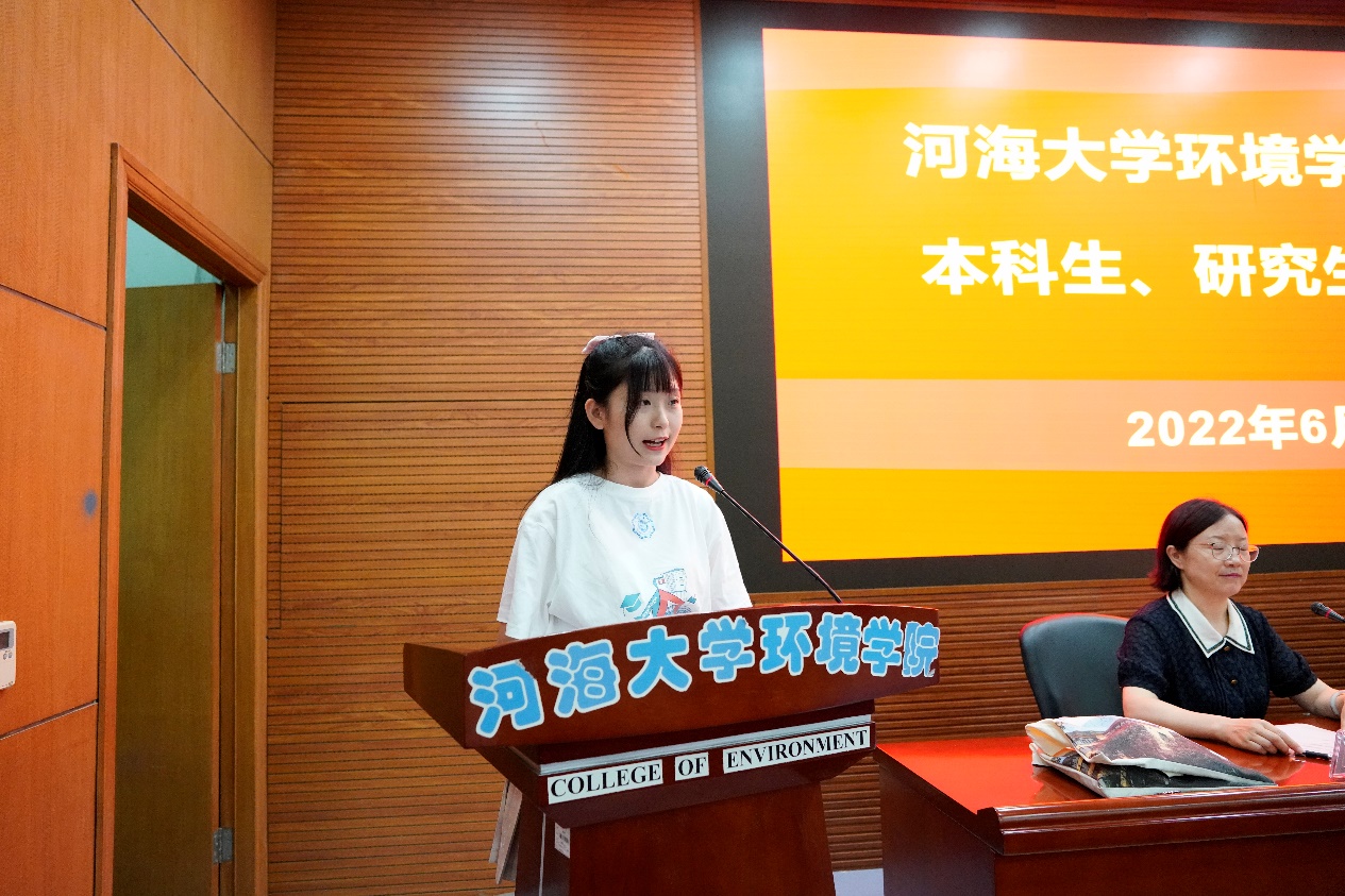 最后,2022届研究生毕业生代表袁伟皓、本科生代表吴双琪同学分别进行了代表发言,他们的发言都表达着对母校的依依惜别之情和对老师的感激之情。同时,他们也祝愿所有毕业生们都可以在未来一帆风顺,前程似锦!
