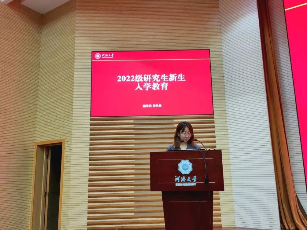 2022年9月7日,学院2022级研究生入学教育暨理想信念课如期举行。国产视频 党委书记笪学军、党委副书记戴玉珍、实验中心主任孙敏、辅导员罗荣荣、辅导员姜秋晨,以及学院200余名研究生新生参加了此次活动。
