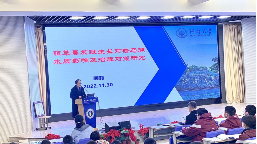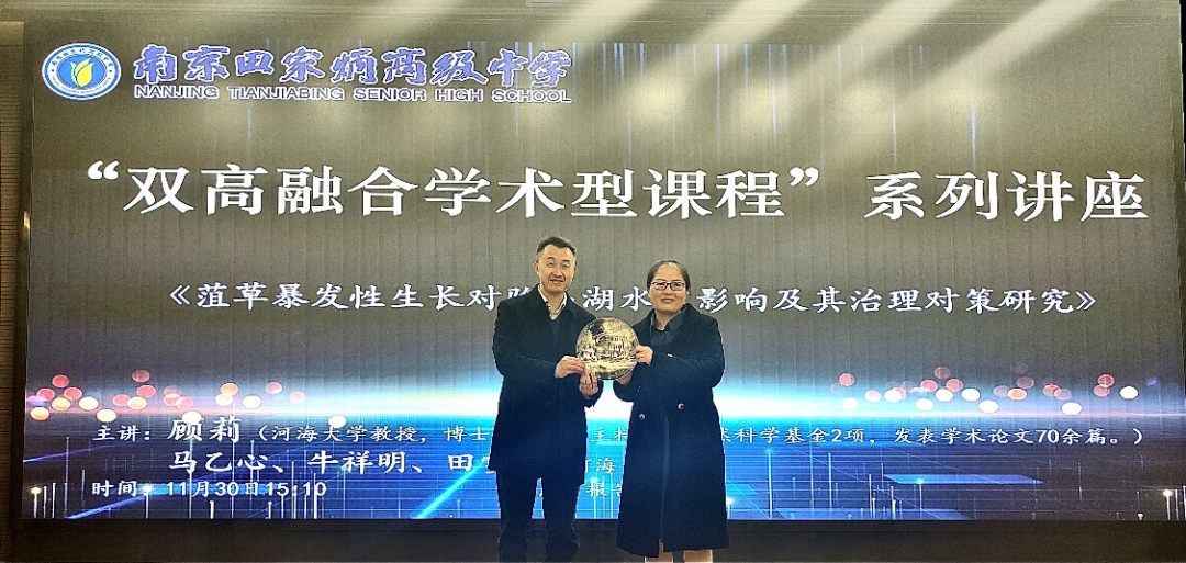 近日,为深入学习贯彻党的二十大关于“推动绿色发展,促进人与自然和谐共生”的会议精神,国产视频 环境科学系党支部前往南京市田家炳高中进行支部共建,开展科普讲座,实现高校与高中的“双高融合”。环科系支部书记顾莉教授围绕自身研究方向,以“菹草暴发性生长对骆马湖水质影响及治理对策研究”为主题向同学们分享。田家炳高级中学的近百名学生在导师带领下参与聆听学习。