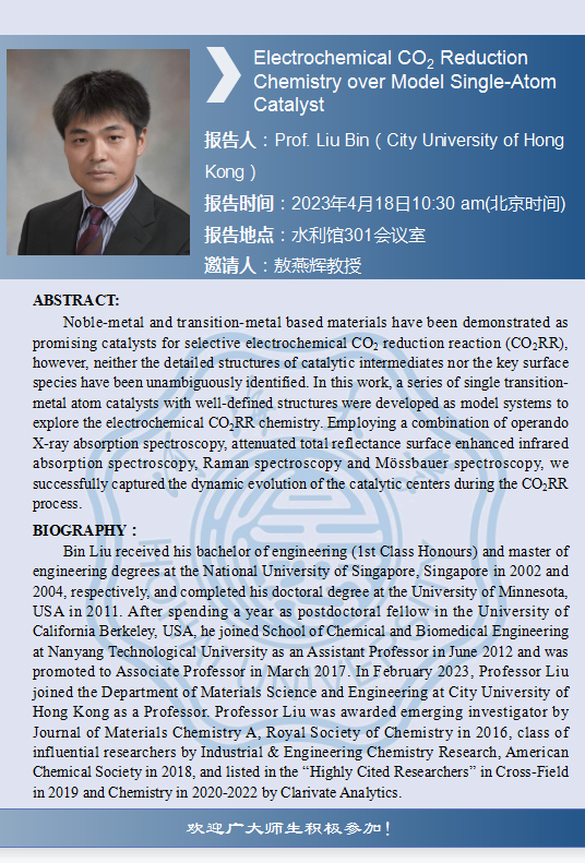 国产视频 学术报告:Electrochemical CO2 Reduction Chemistry over Model Single-Atom Catalyst
