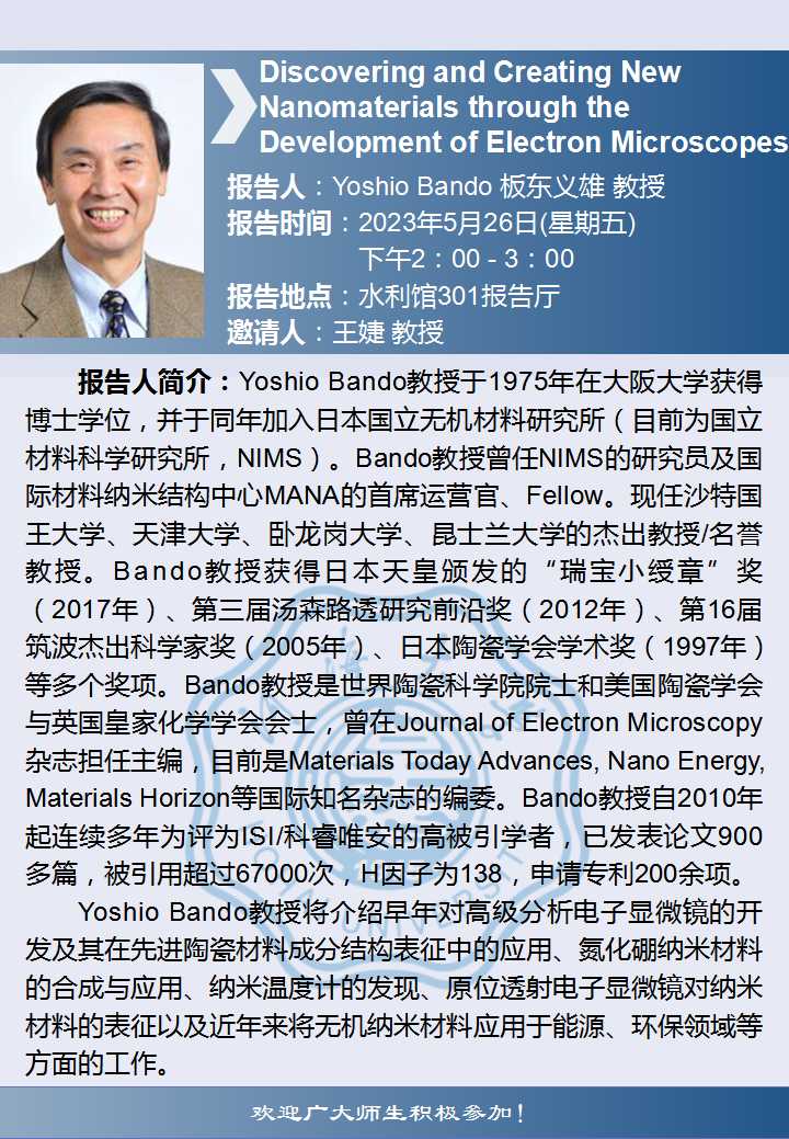 国产视频 学术报告:Discovering and Creating New Nanomaterials through the Development of Electron Microscopes