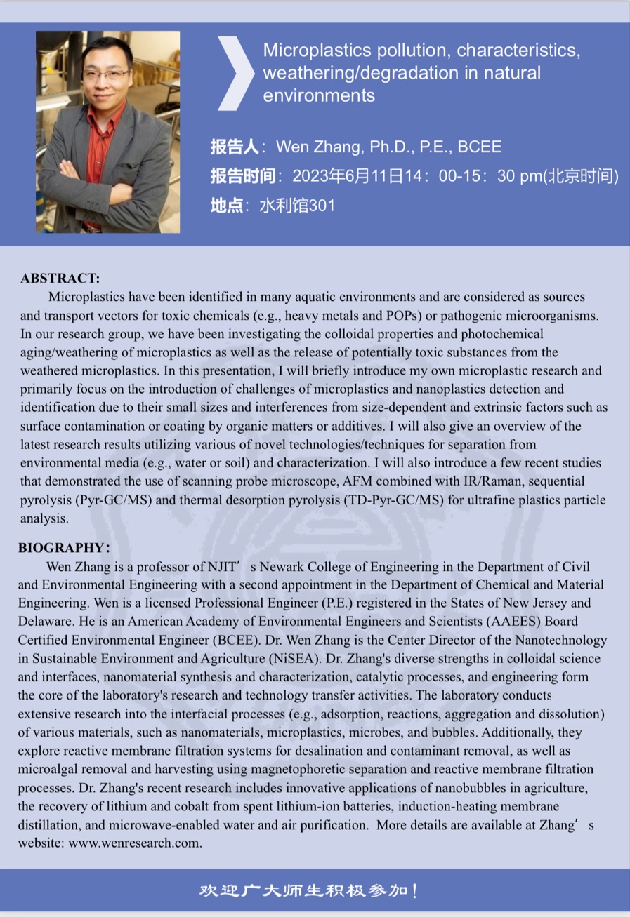 国产视频 学术报告:Microplastics pollution, characteristics,weathering/degradation in natural environments
