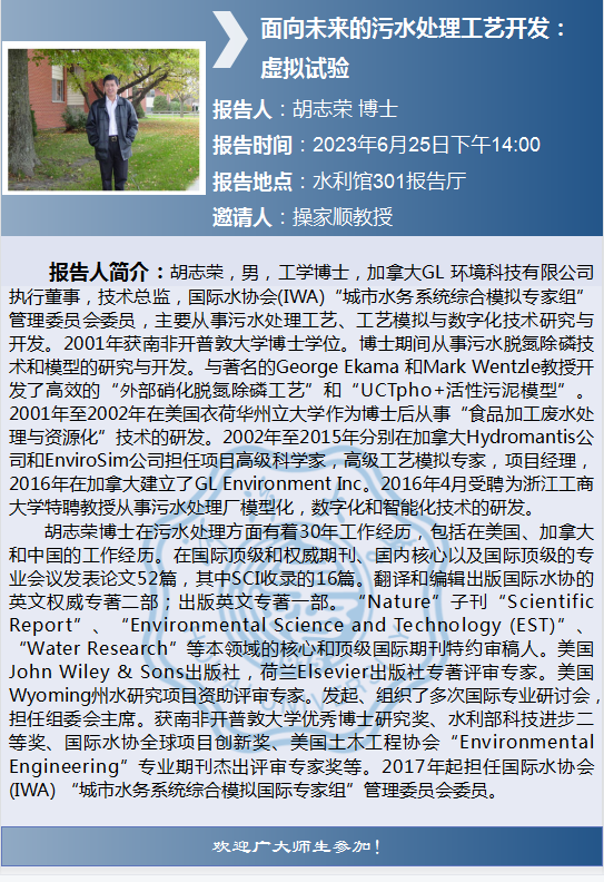 国产视频 学术报告:面向未来的污水处理工艺开发:虚拟试验