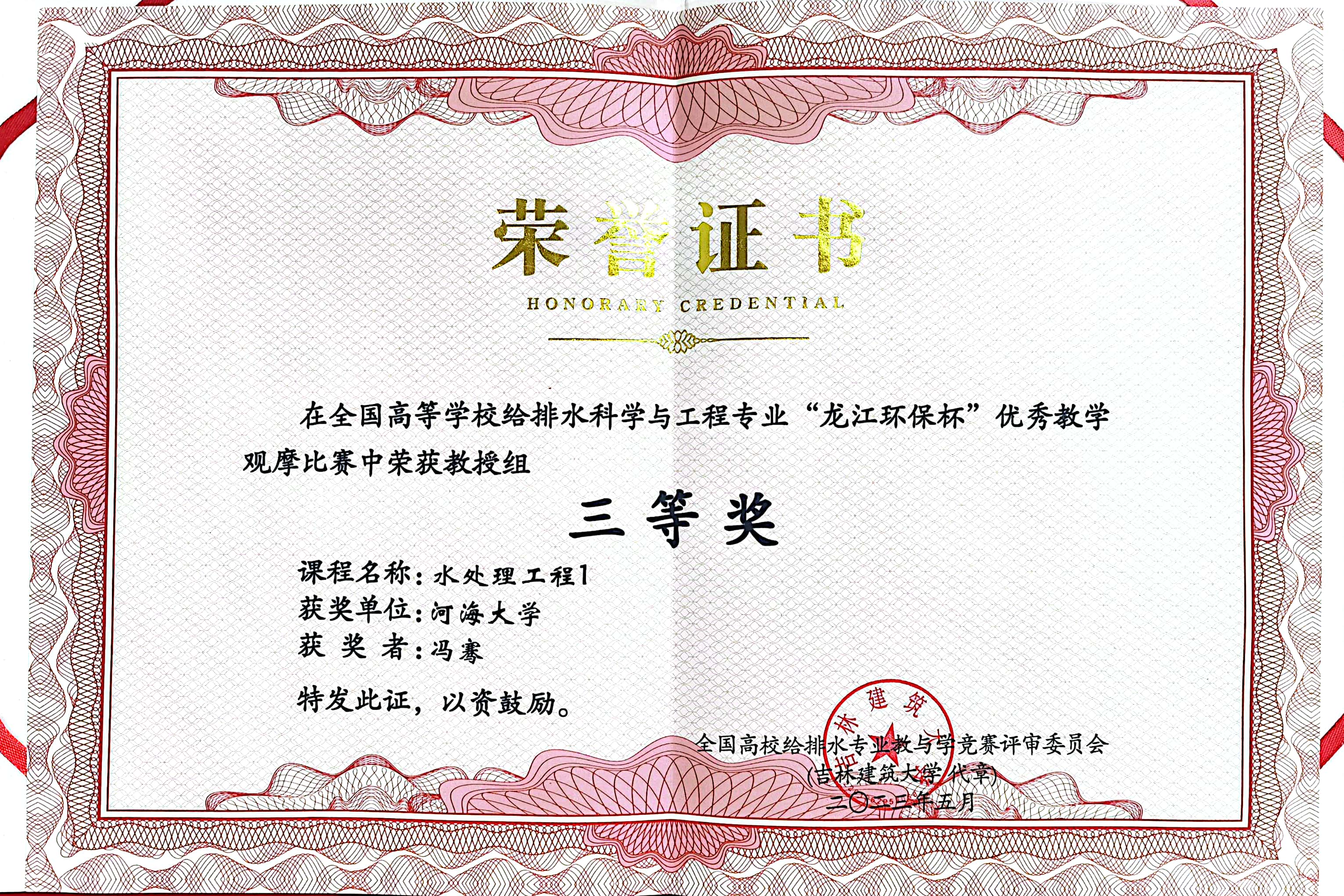 近日,全国高等学校给排水科学与工程专业“龙江环保杯”优秀教学观摩比赛在长春举办。我院市政工程系冯骞教授不畏强手,通过现场教学展示和专家答辩,从激烈的竞争中脱颖而出,最终收获优秀教学观摩比赛教授组三等奖,展示了河海给排水教师优秀的专业素养和良好的精神风貌。比赛来之不易的收获,也激发了广大青年教师投身教学改革的热情,为本科教育教学水平的提高与一流课程的建设提供了重要的支撑和助力。