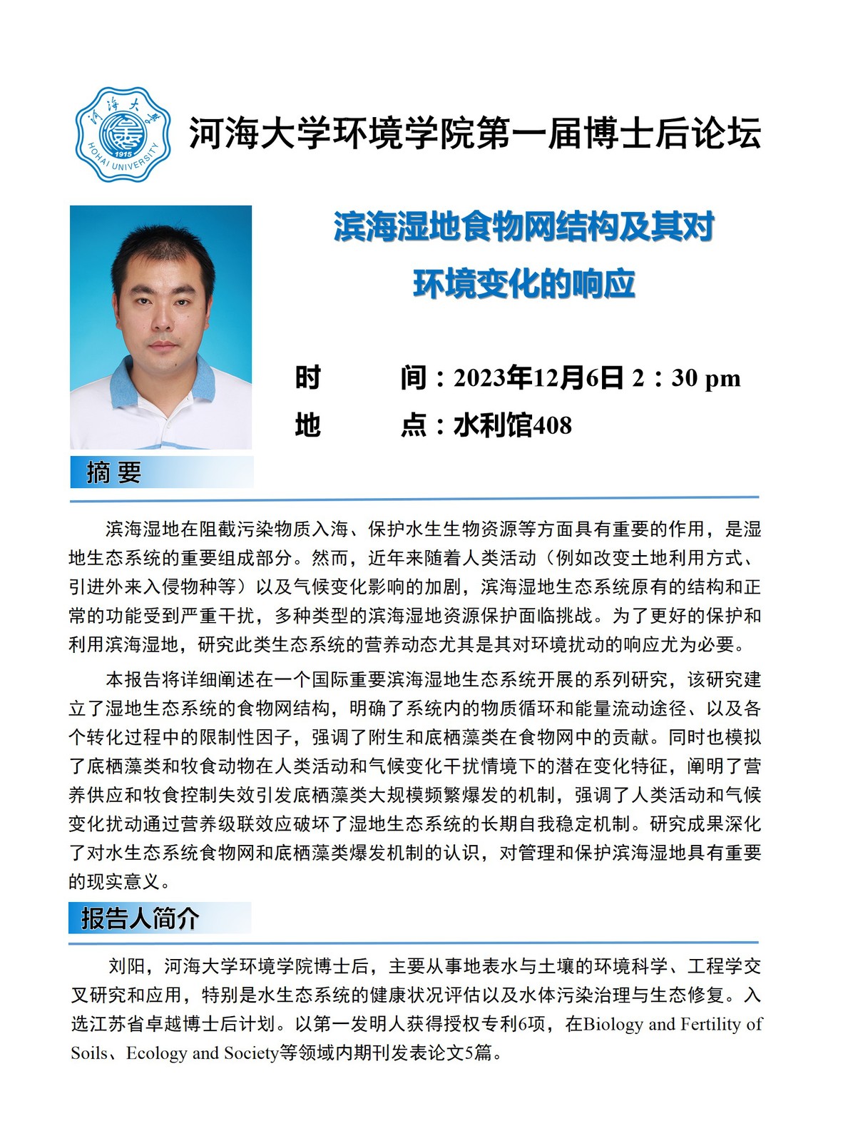 国产视频 第一届博士后论坛:滨海湿地食物网结构及其对环境变化的响应